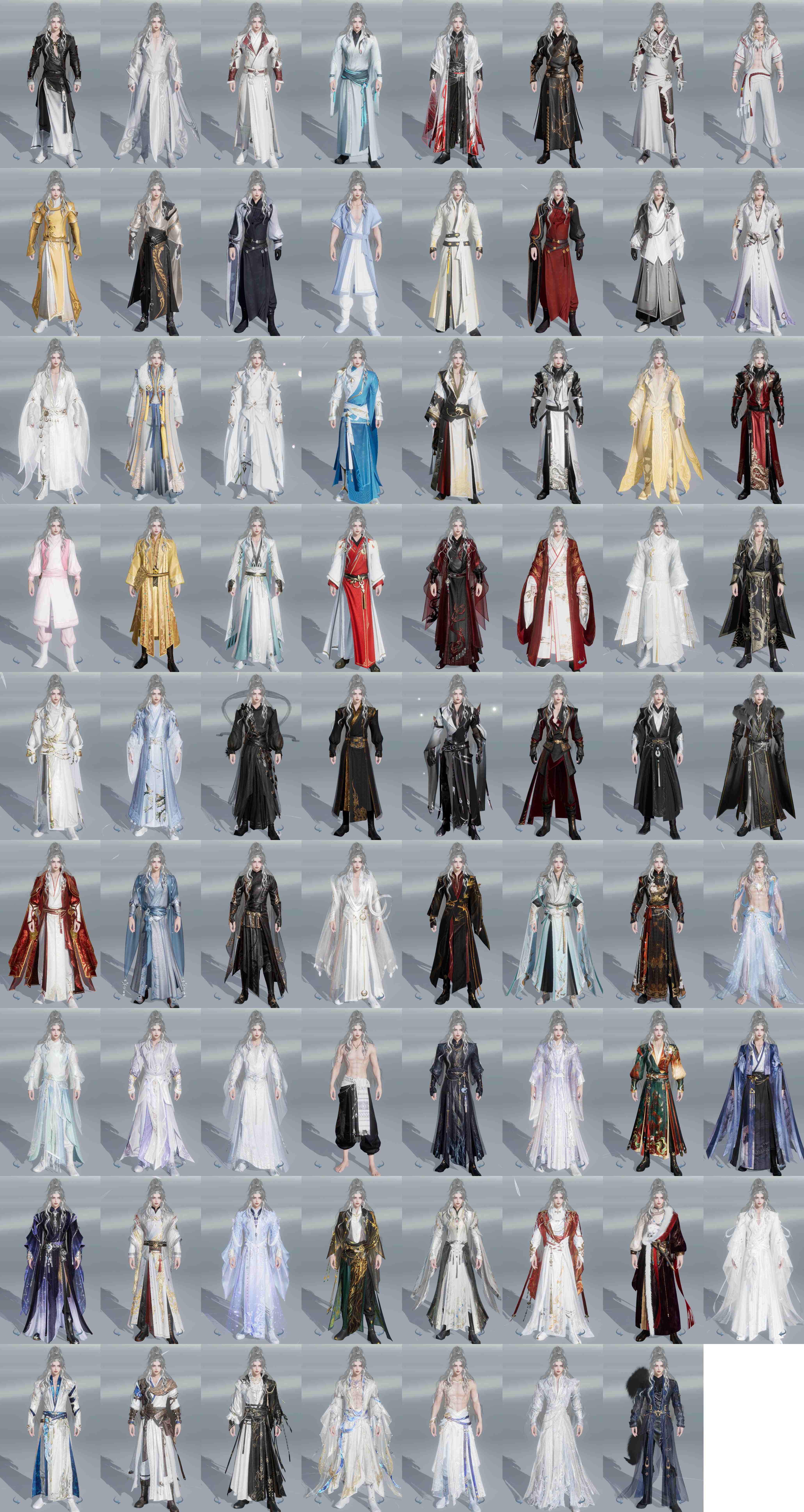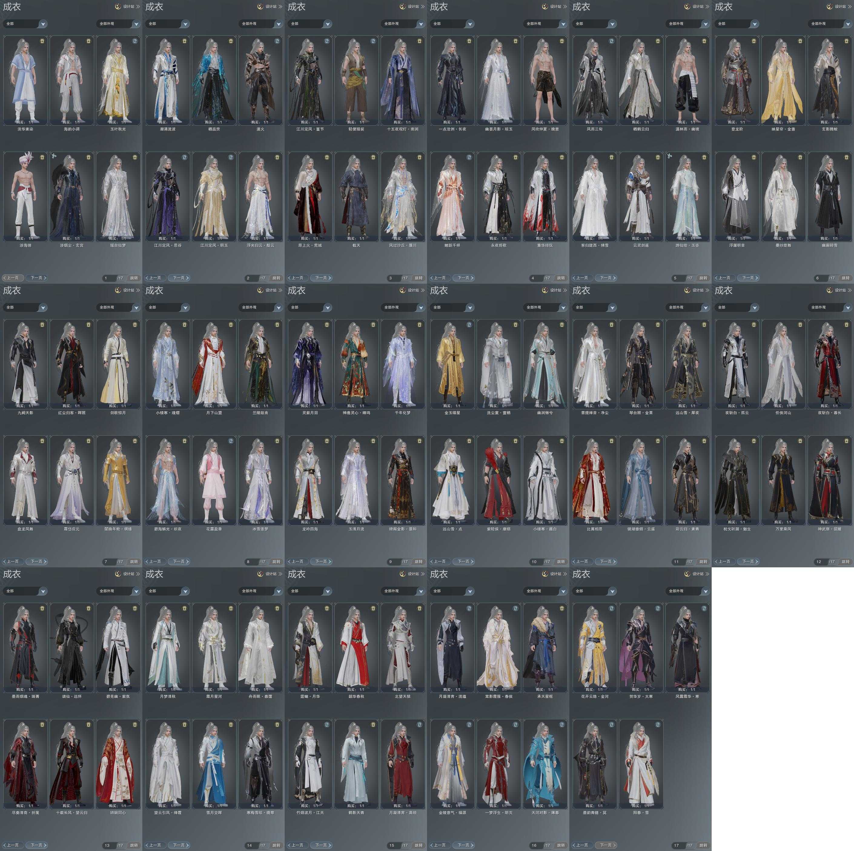 单盒成衣:[白盒衣, 小白龙衣, 二代七夕衣, 一代花朝白衣, 黑谪仙衣, 白菩提衣, 花滑盒衣, 黑傣族衣, 黑沧洲盒衣, 原色鹿衣, 茄盒衣, 龙吟盒衣, 梦盒衣, 瑶台仙梦]