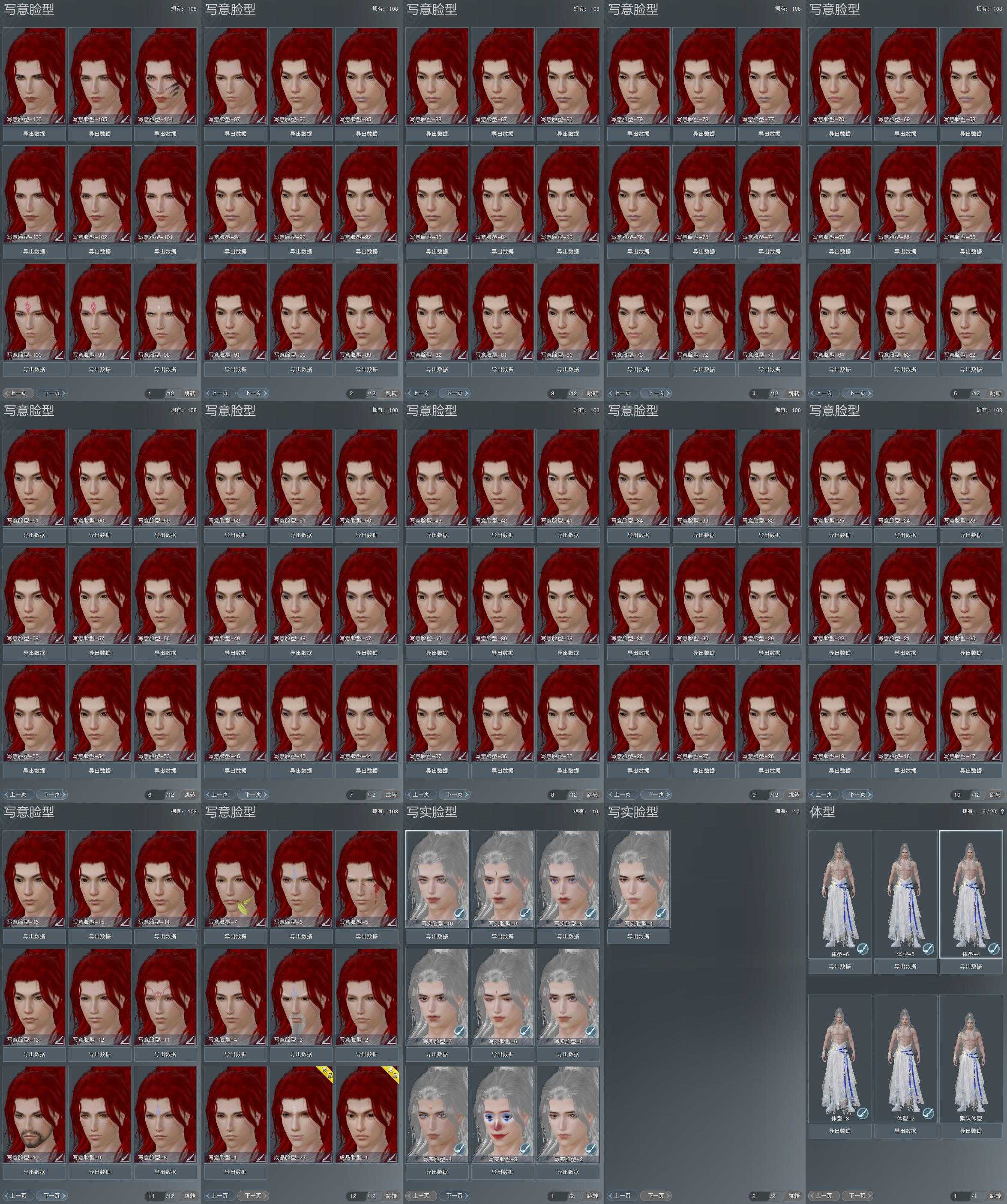 【捏脸】写意脸型108个,写实脸型10个,体型6个