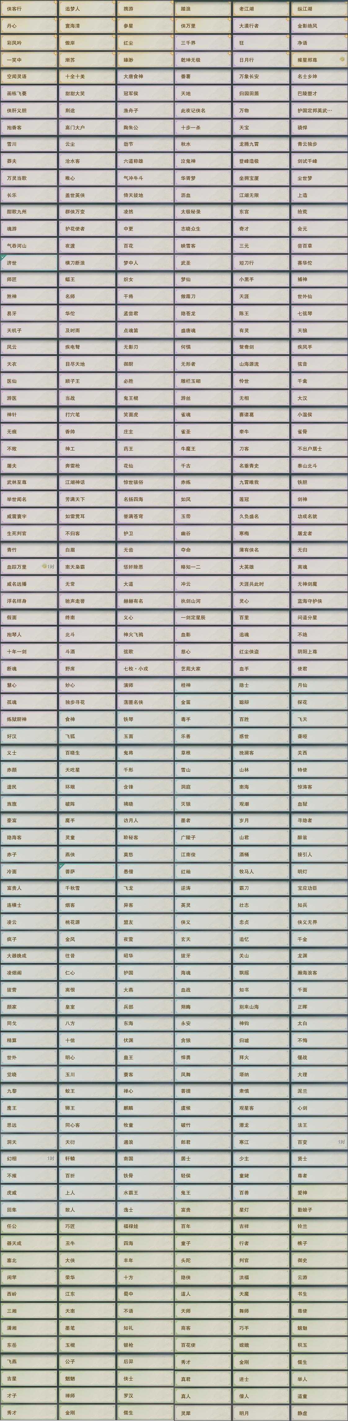 【称号】[纵江湖, 侠万里, 乾坤无极]