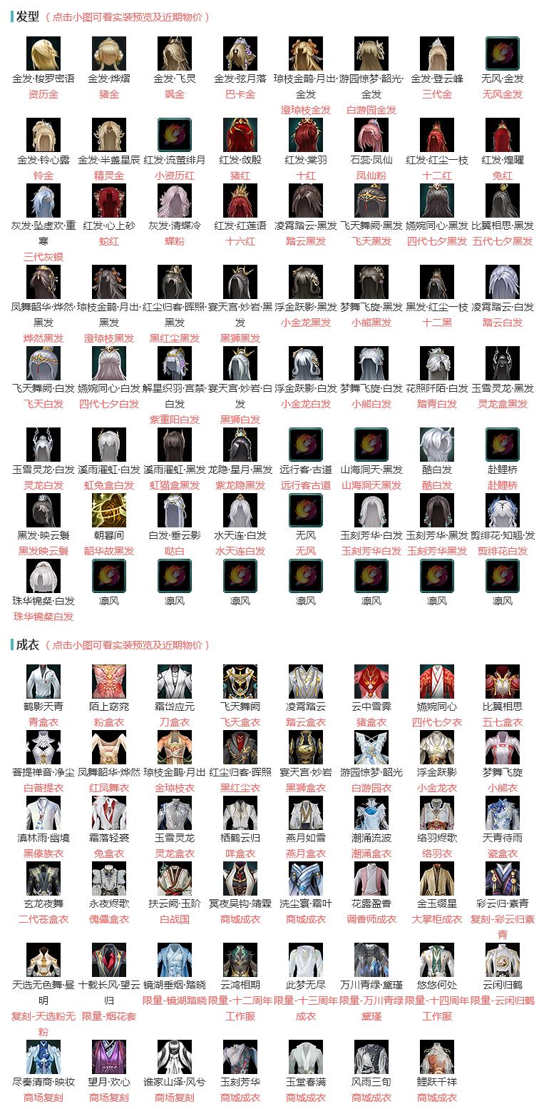 限时限量:[云闲归鹤, 万川青绿黛瑾, 镜湖踏晓, 烟花套, 十三周年成衣, 十四周年工作服, 十二周年工作服]
