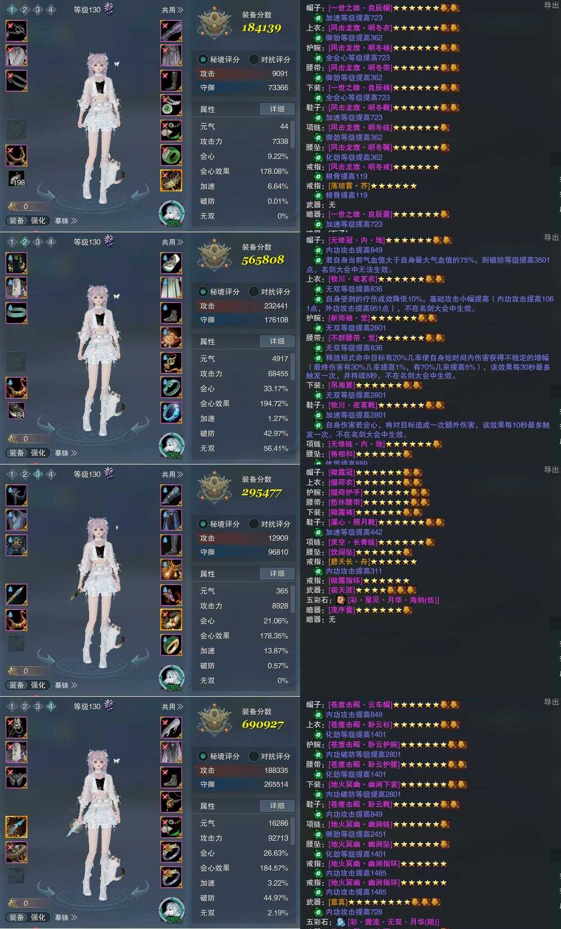 【装备】130级,装备一184139,花间游PVE565808,装备三295477,花间游PVP690927