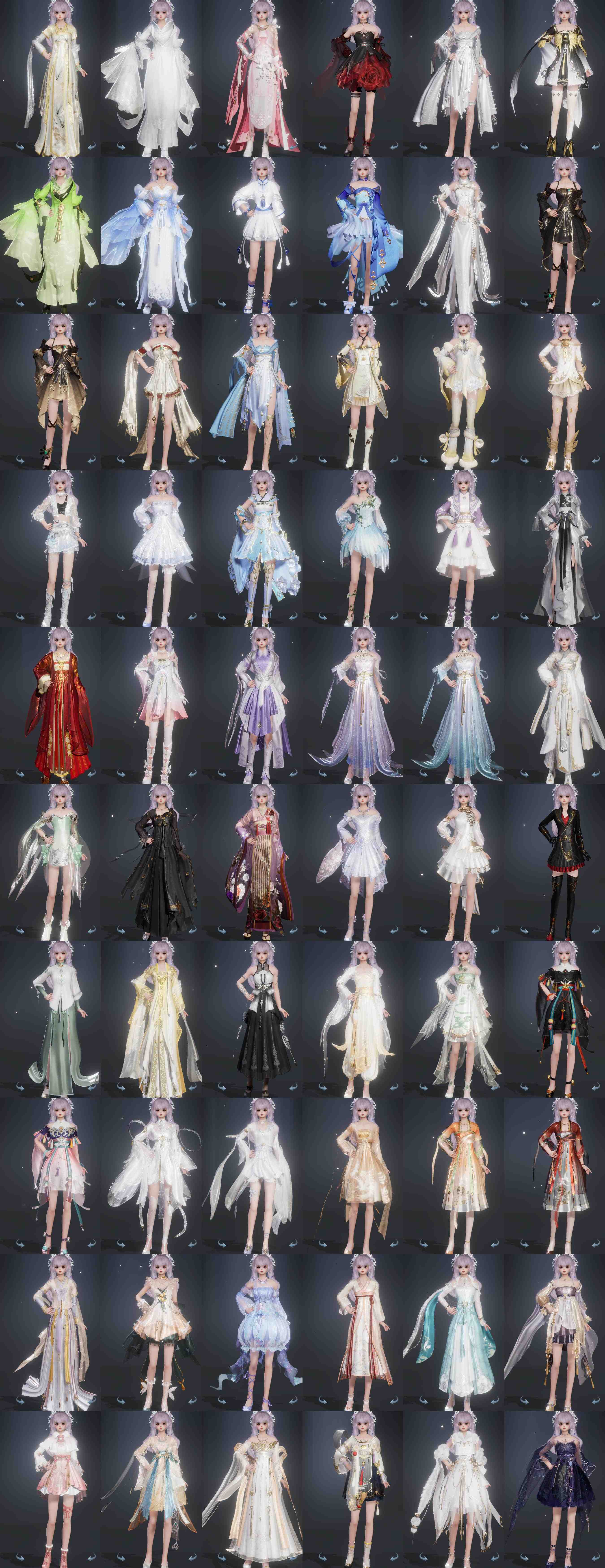 复刻:[白白菜, 望月欢心, 银罗姆, 复刻黑玫瑰, 潇湘玄云, 沧海间湘月, 彩云归落雪, 白贺华岁, 风华深冕, 风华韵金, 阳春烬, 天河枕星, 雪山云魂, 白机车, 蓝二公主, 复刻蓝不欺, 彩云归若霞, 尽奏绕纱, 一梦飘摇, 凤舆云门, 谁家风兮, 谁家雨兮, 龙鸾舞千花, 洗尘寰倚染, 复刻黄绸云]