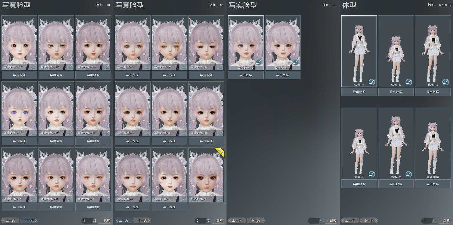 【捏脸】写意脸型18个,写实脸型2个,体型6个