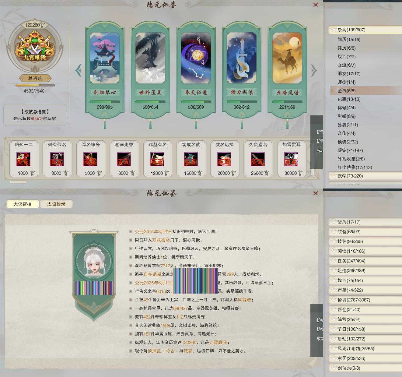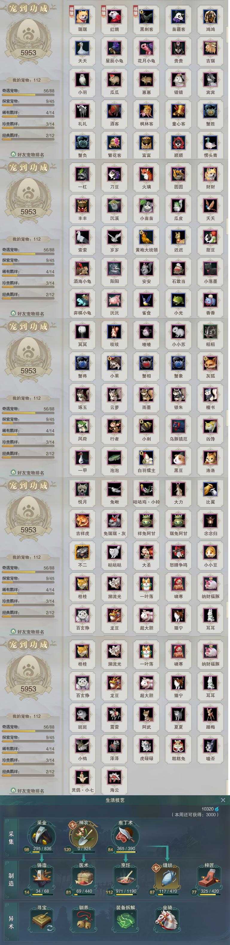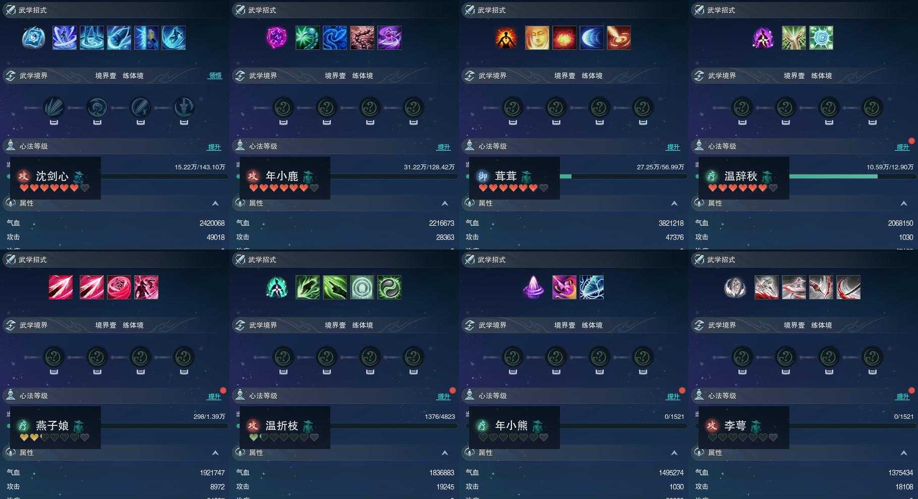 【同伴】沈剑心88级境界壹,年小鹿86级境界壹,茸茸志80级境界壹,温辞秋69级境界壹,燕子娘52级境界壹,温折枝42级境界壹,年小熊1级境界壹,李萼志1级境界壹