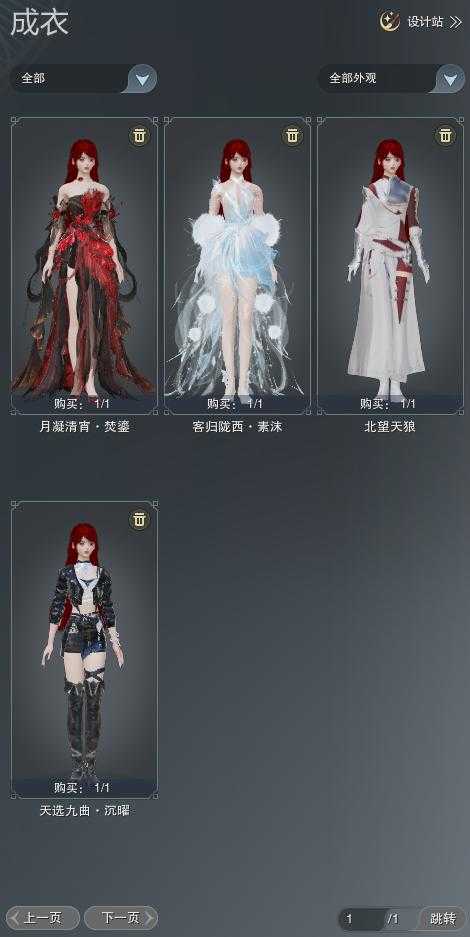 【成衣】总计4件,单盒成衣2件,限时限量2件,商城0件,下架0件