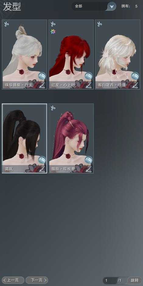 【发型】金发1个[粉陇西金发], 红发2个[紫发, 蛇红], 黑发1个, 白发1个, 盒子发型[], 总页数1