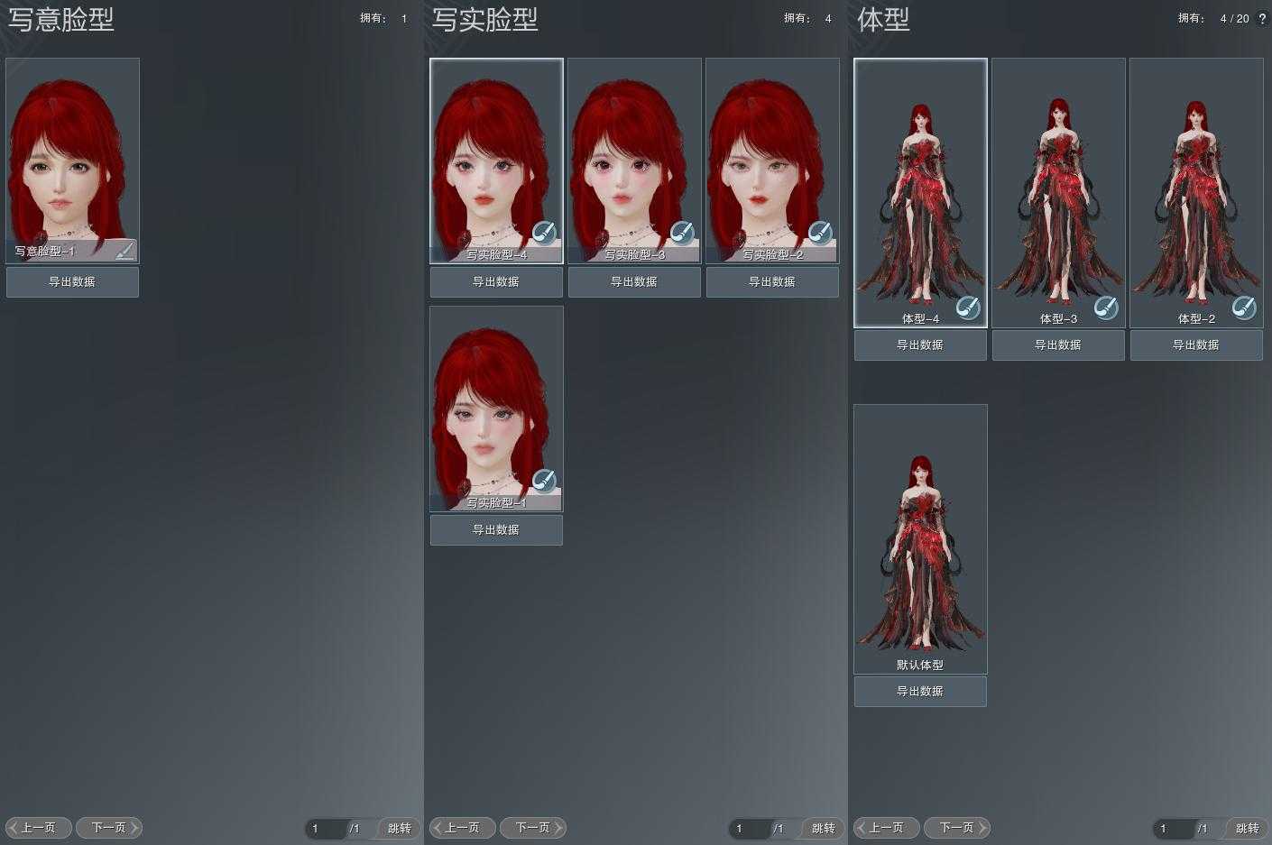 【捏脸】写意脸型1个,写实脸型4个,体型4个