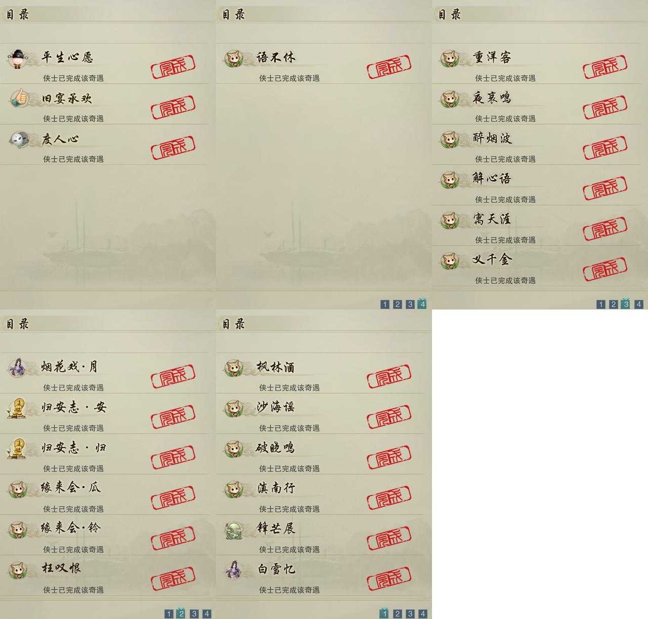 【奇珍】19个[枫林酒, 滇南行, 破晓鸣, 沙海谣, 白雪忆, 锋芒展, 烟花戏·月, 归安志·归, 归安志·安, 缘来会·铃]