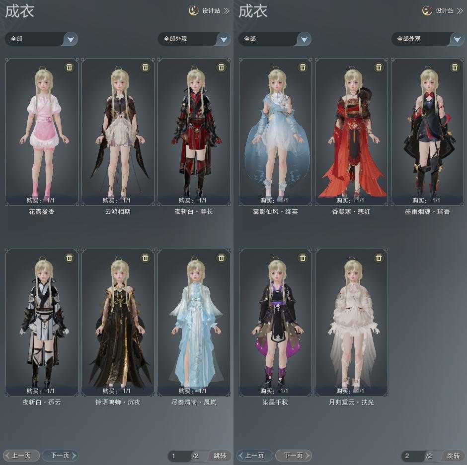 【成衣】总计11件,单盒成衣3件,限时限量6件,商城2件,下架0件