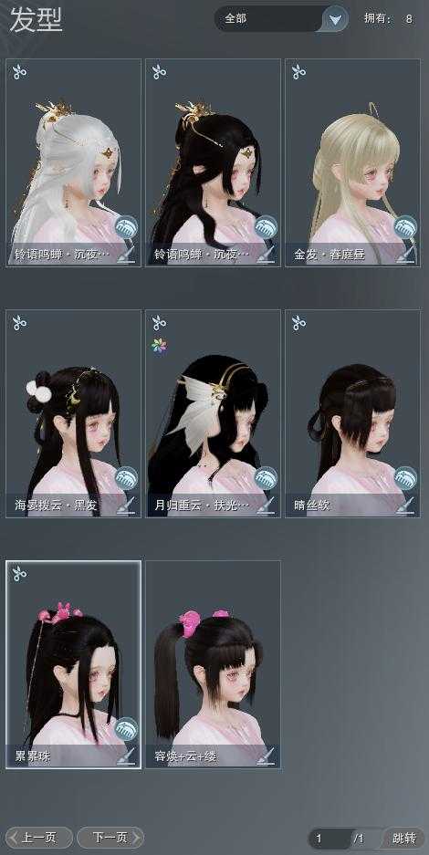 【发型】金发1个[鼠金], 红发0个[], 黑发4个, 白发2个, 盒子发型[狄仁杰黑, 狗白, 黑楼兰黑发, 黑楼兰白发], 总页数1