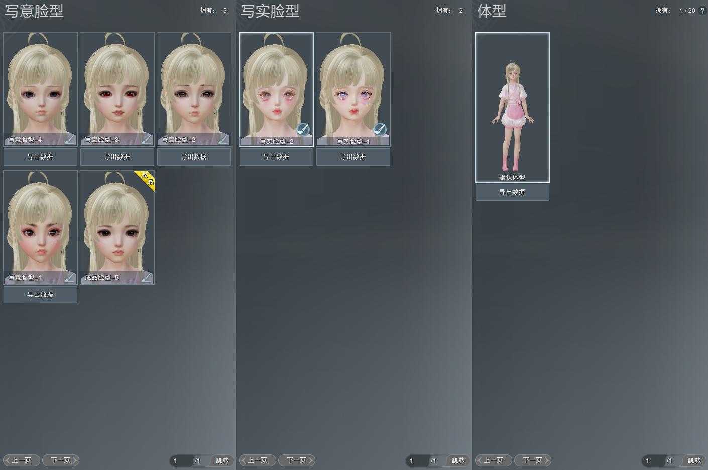 【捏脸】写意脸型5个,写实脸型2个,体型1个