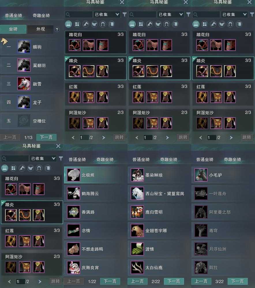 【奇趣】12个[黛篁鸾舆, 墨染琳琅, 鹿车, 金翅苍宇雕, 渡船, 仙鹿, 毛驴, 庆舞良宵奇趣, 不想走路鸭, 香满路]