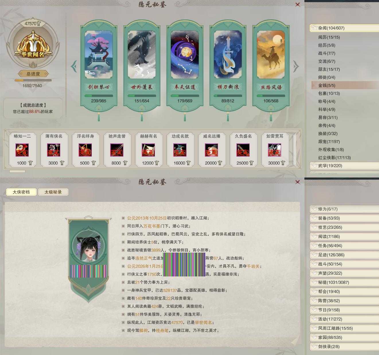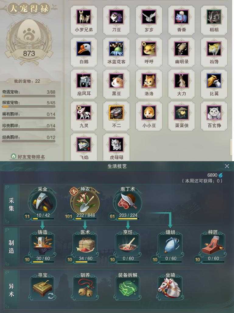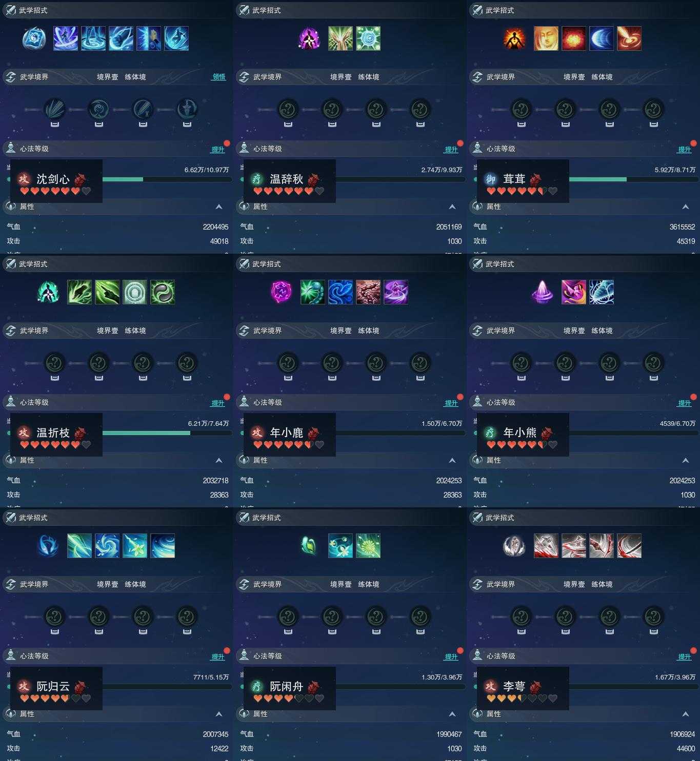 【同伴】沈剑心69级境界壹,温辞秋67级境界壹,茸茸66级境界壹,温折枝65级境界壹,年小鹿64级境界壹,年小熊64级境界壹,阮归云62级境界壹,阮闲舟60级境界壹,李萼60级境界壹