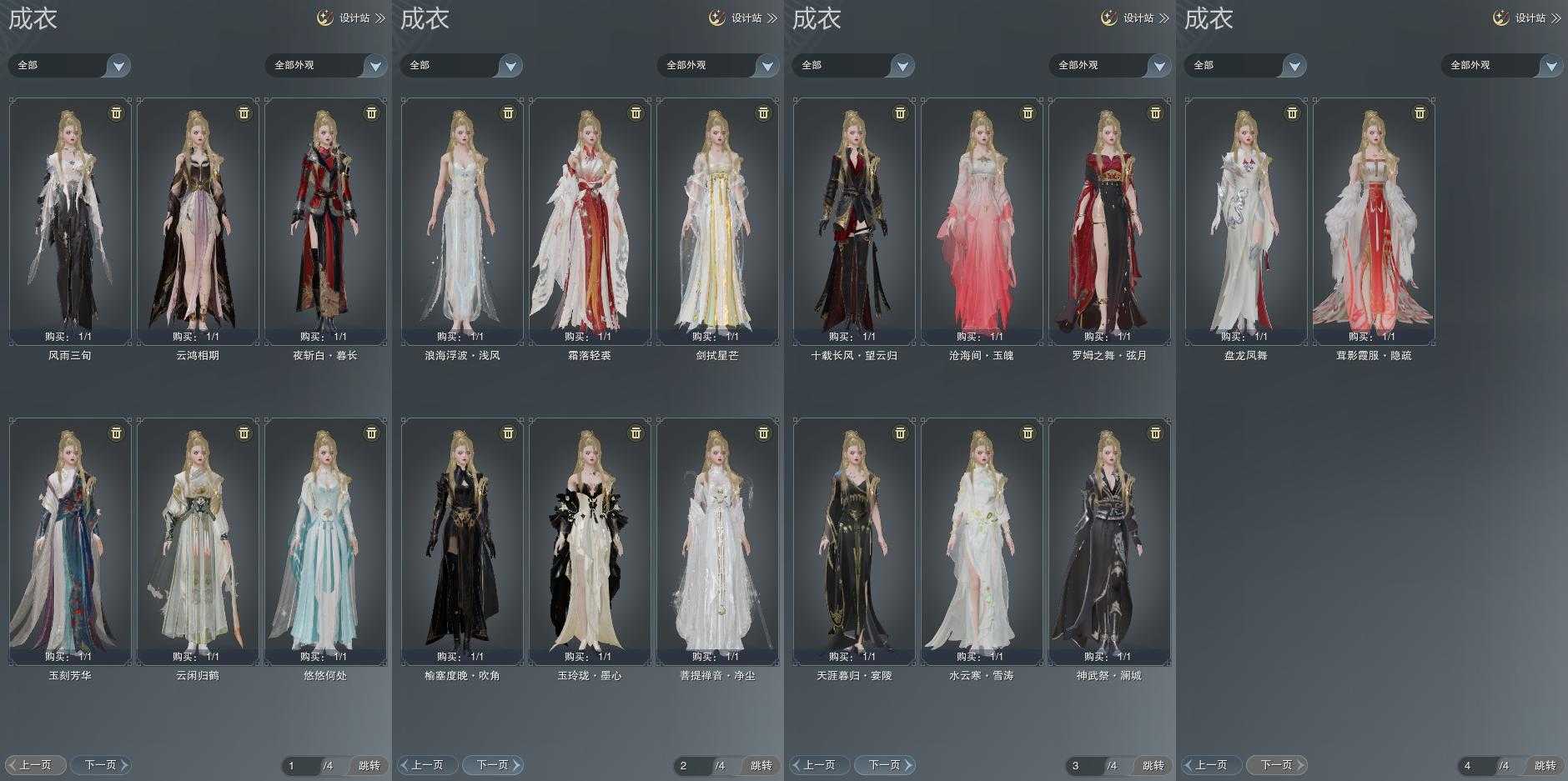 【成衣】总计20件,单盒成衣5件,限时限量11件,商城4件,下架0件