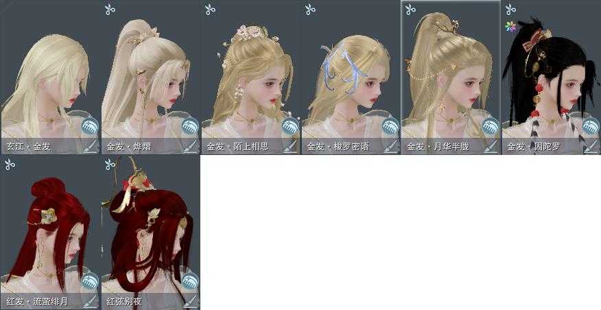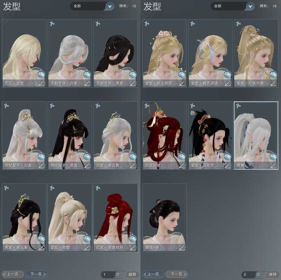【发型】金发6个[猴金, 资历金, 鸡金, 考金, 猪金, 玄江金发], 红发2个[鸡红, 小资历红], 黑发3个, 白发4个, 盒子发型[星源黑发, 星源白发], 总页数2