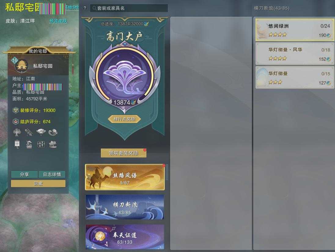 【家园】房屋等级16,私邸宅园,梓行点13874