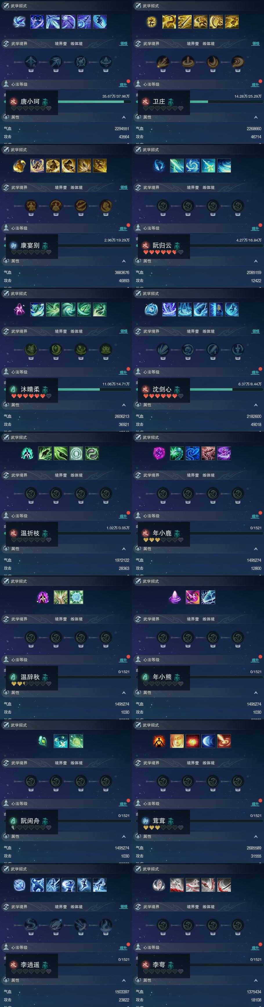 【同伴】唐小珂77级境界壹,卫庄志74级境界壹,康宴别72级境界壹,阮归云71级境界壹,沐晴柔70级境界壹,沈剑心67级境界壹,温折枝58级境界壹,年小鹿1级境界壹,温辞秋1级境界壹,年小熊1级境界壹,阮闲舟1级境界壹,茸茸志1级境界壹,李逍遥1级境界壹,李萼志1级境界壹