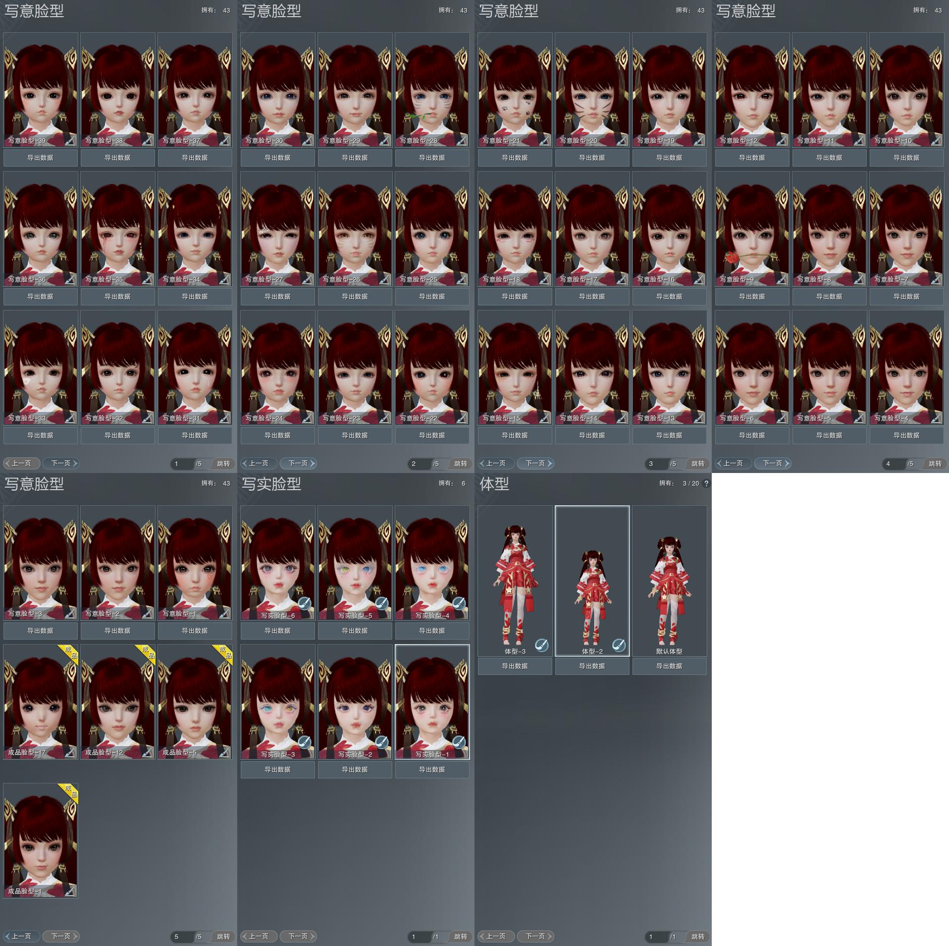 【捏脸】写意脸型43个,写实脸型6个,体型3个