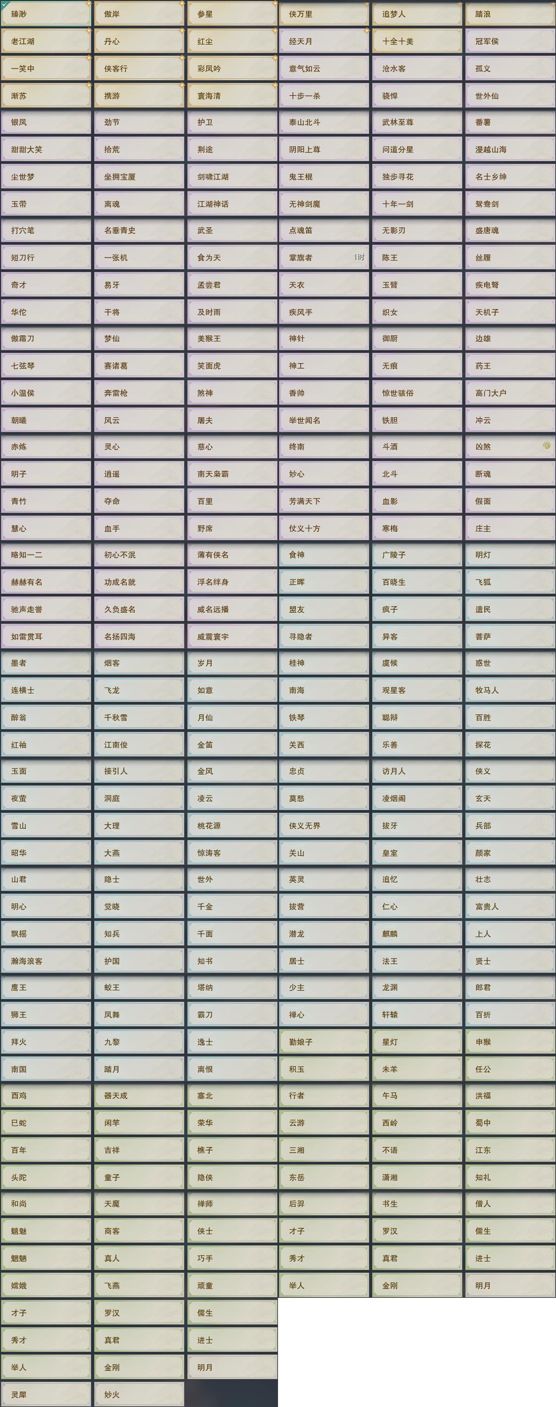 【称号】[侠万里, 经天月]
