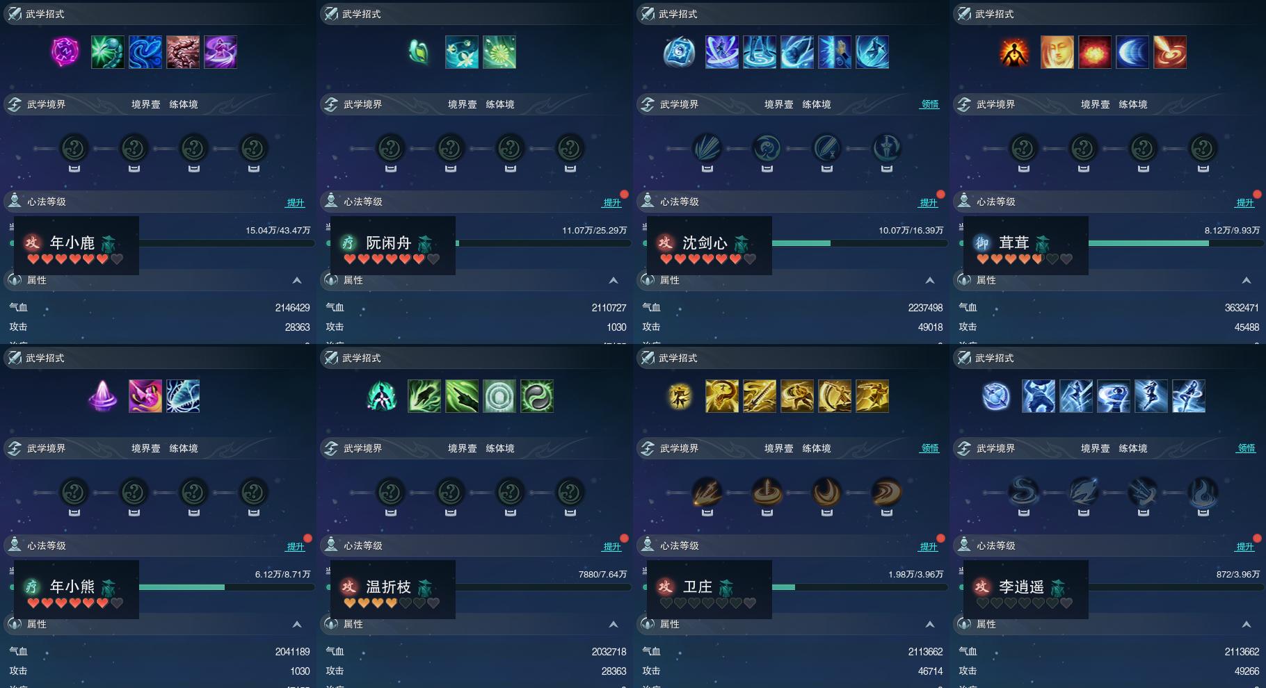 【同伴】年小鹿78级境界壹,阮闲舟74级境界壹,沈剑心72级境界壹,茸茸志67级境界壹,年小熊66级境界壹,温折枝65级境界壹,卫庄志60级境界壹,李逍遥60级境界壹
