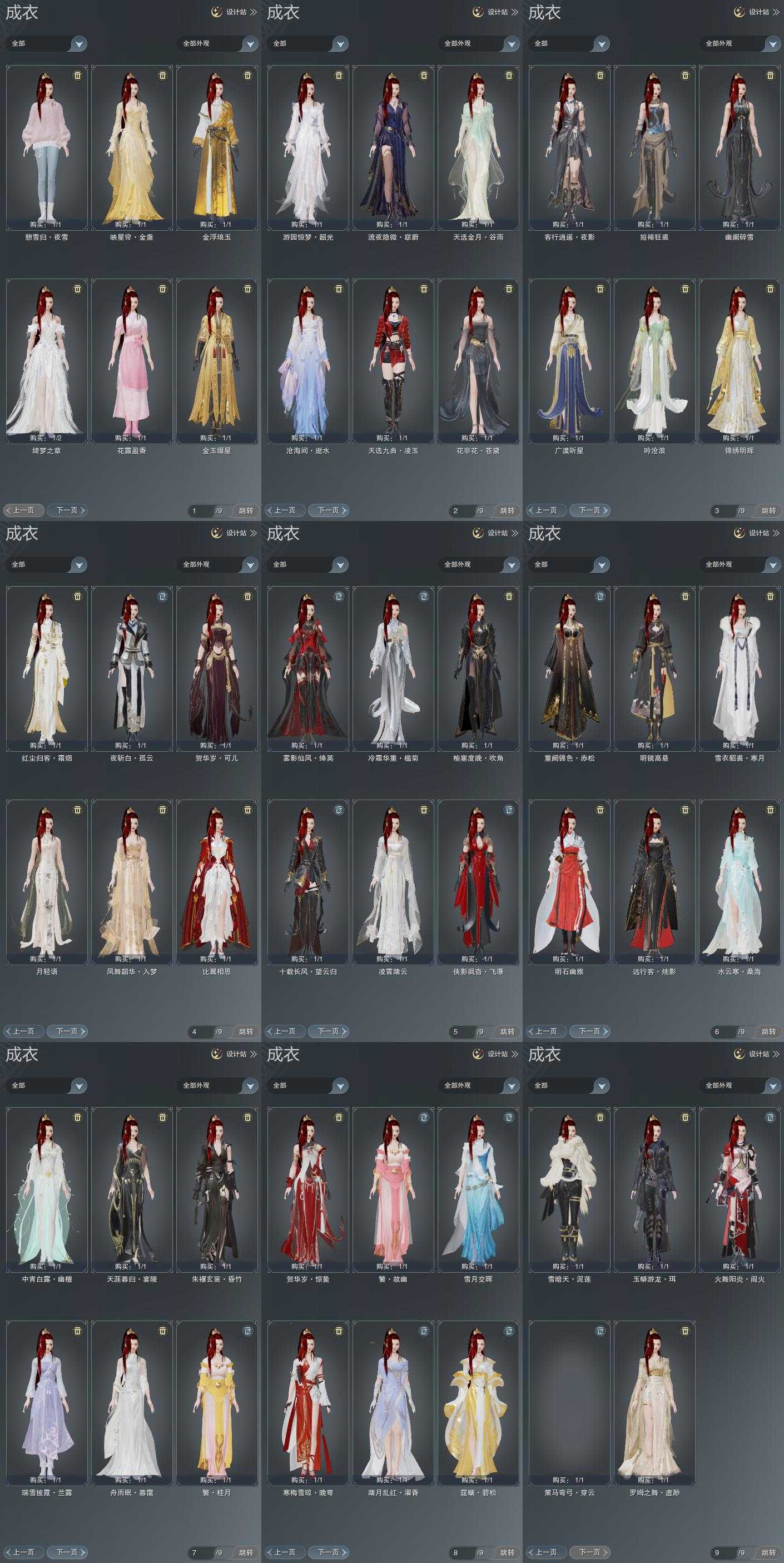 单盒成衣:[棋盒衣, 旗袍衣, 沧海衣, 白游园衣, 婚纱衣]