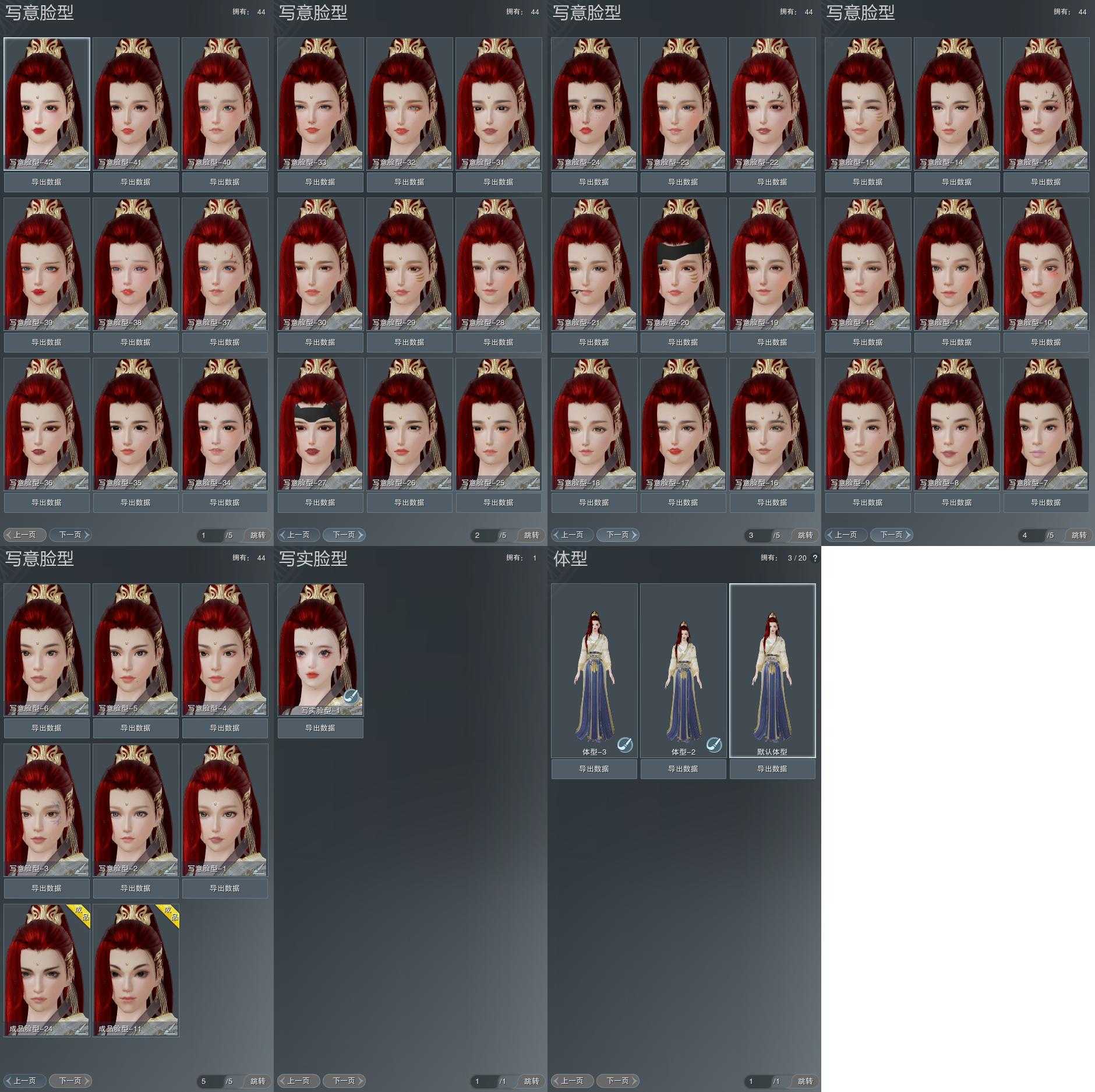 【捏脸】写意脸型44个,写实脸型1个,体型3个