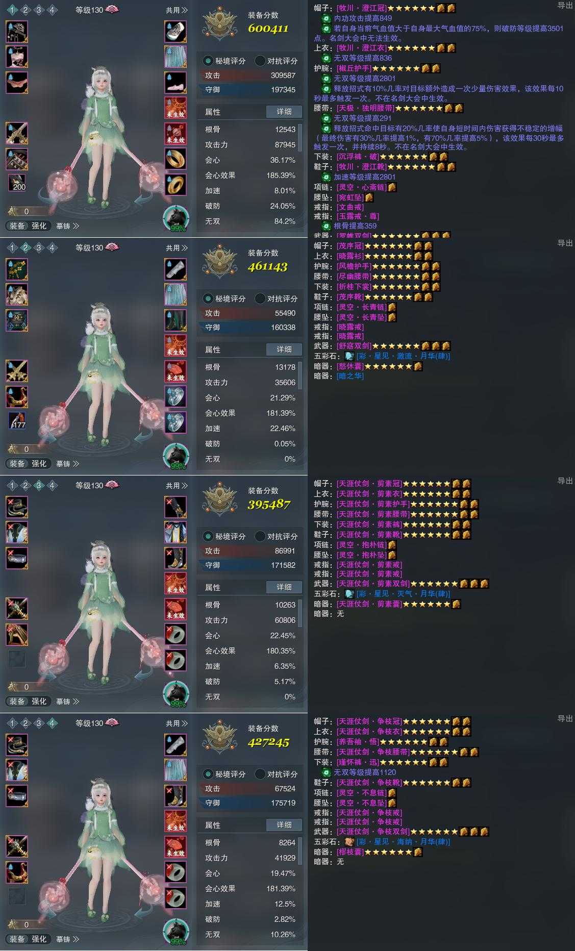 【装备】130级,冰心诀PVE600411,云裳心经PVE461143,冰心诀PVP395487,七秀装备四427245