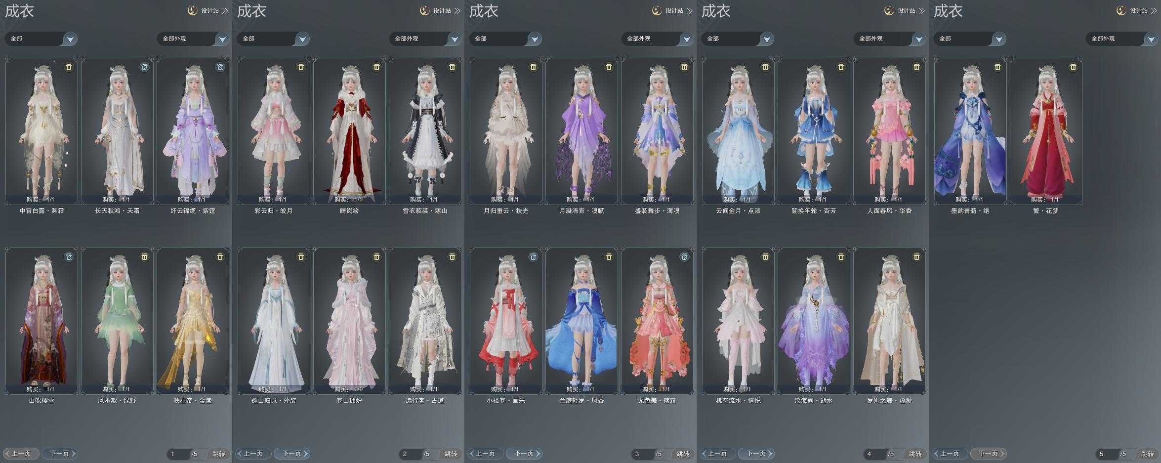 限时限量:[黄九壤, 水云寒雪涛, 兰庭凤香, 黄玫瑰, 雪衣寒山, 白长天, 粉封川, 粉舞步, 十三万资历衣, 中宵渊霜, 烟花套, 镜湖阑珊, 十四周年工作服]