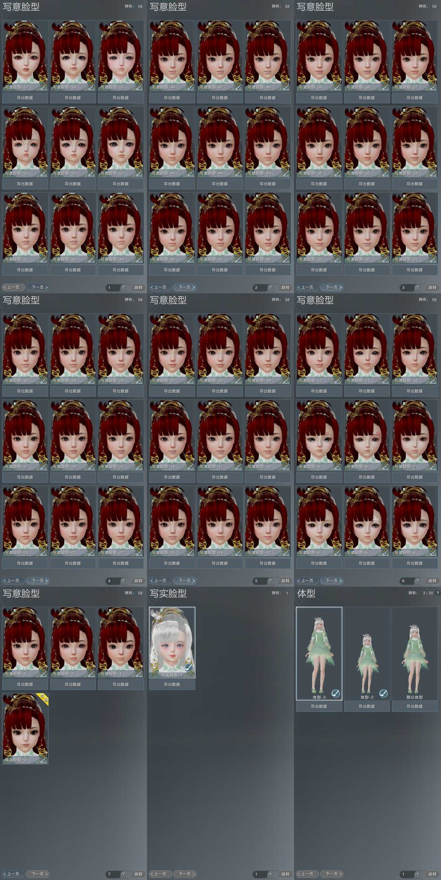 【捏脸】写意脸型58个,写实脸型1个,体型3个