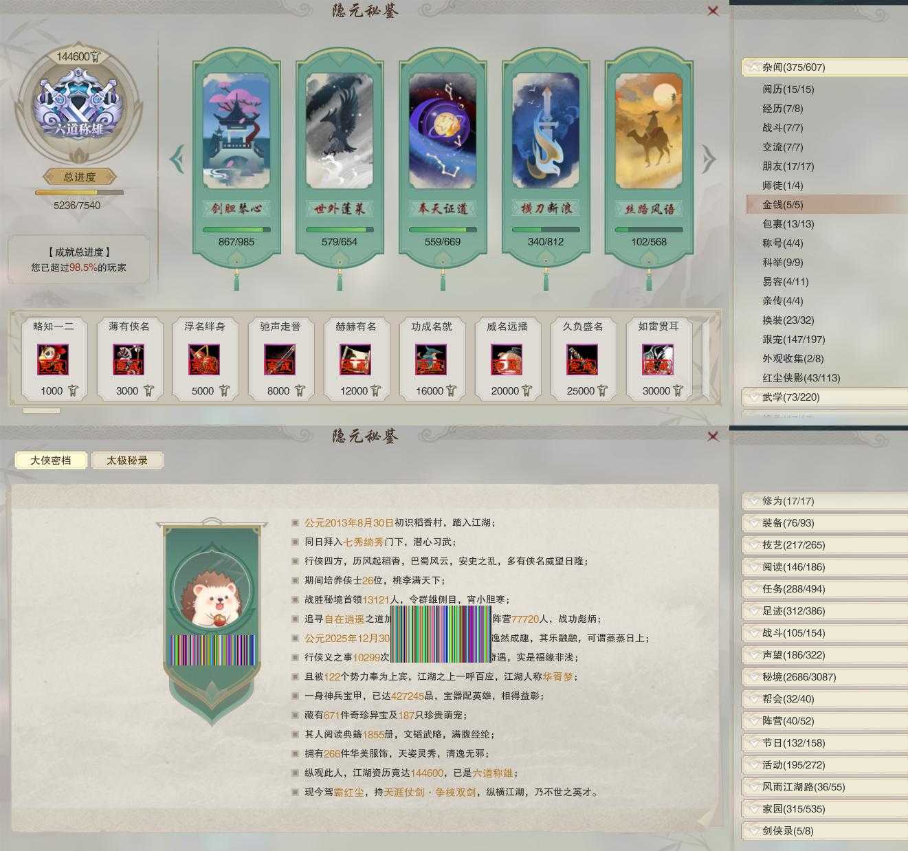 【奇珍】66个[枫林酒, 红衣歌, 归乡路, 胜负局, 孩童书, 清茗经, 捉妖记, 至尊宝, 石敢当, 稚子心]