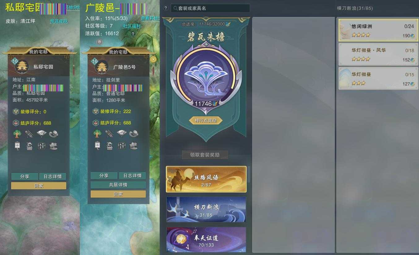 【家园】房屋等级16,社区等级了,私邸宅园,梓行点11746