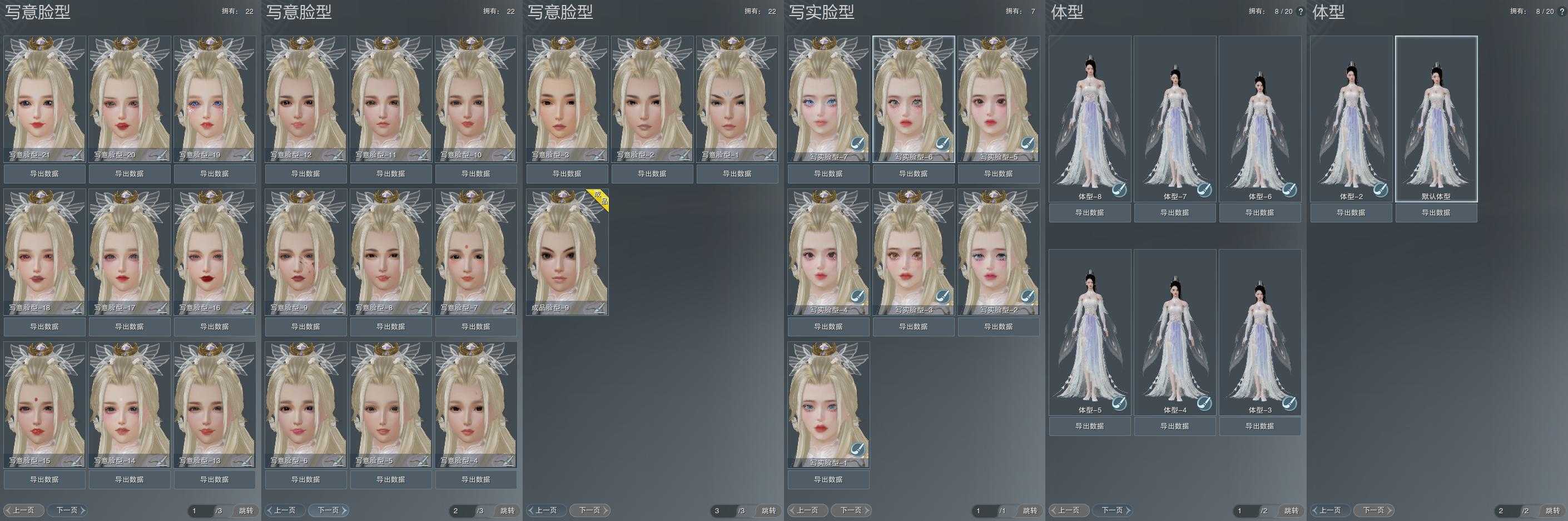 【捏脸】写意脸型22个,写实脸型7个,体型8个