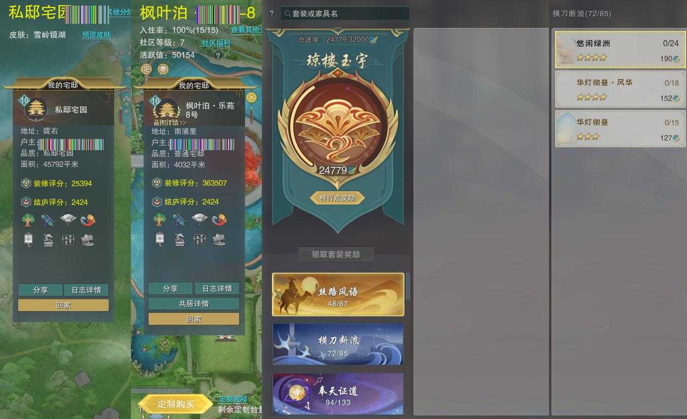 【家园】房屋等级16,社区等级了,私邸宅园,梓行点24779