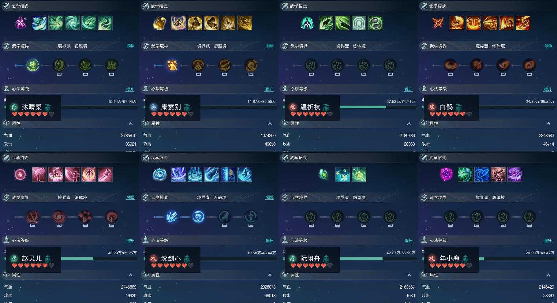【同伴】沐晴柔84级境界贰,康宴别83级境界贰,温折枝82级境界壹,白鹊志81级境界壹,赵灵儿81级境界壹,沈剑心80级境界叁,阮闲舟80级境界壹,年小鹿78级境界壹
