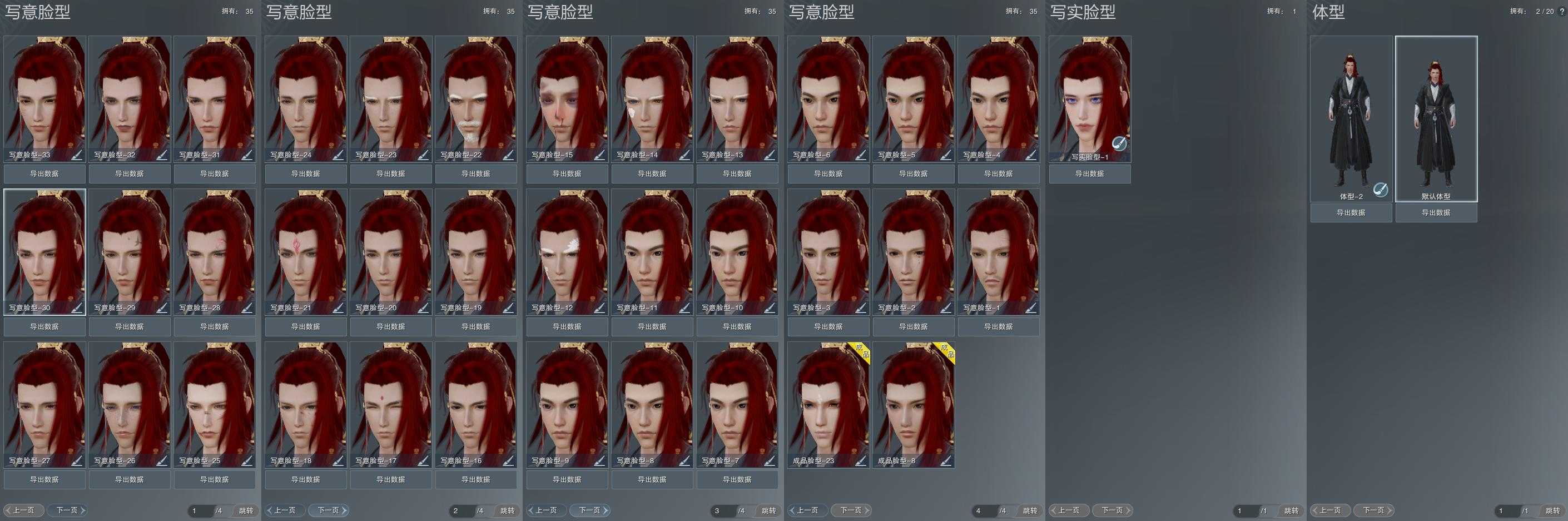 【捏脸】写意脸型35个,写实脸型1个,体型2个