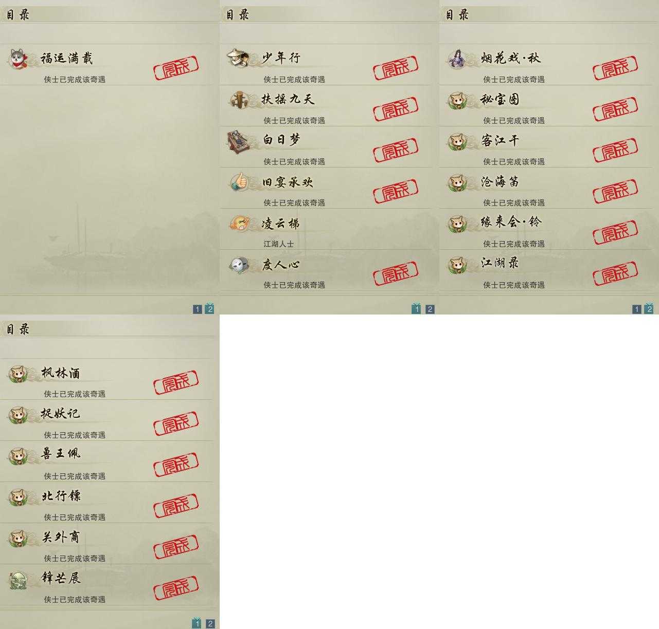 【奇遇】7个[白日梦, 少年行, 扶摇九天, 凌云梯, 度人心, 旧宴承欢, 福运满载]