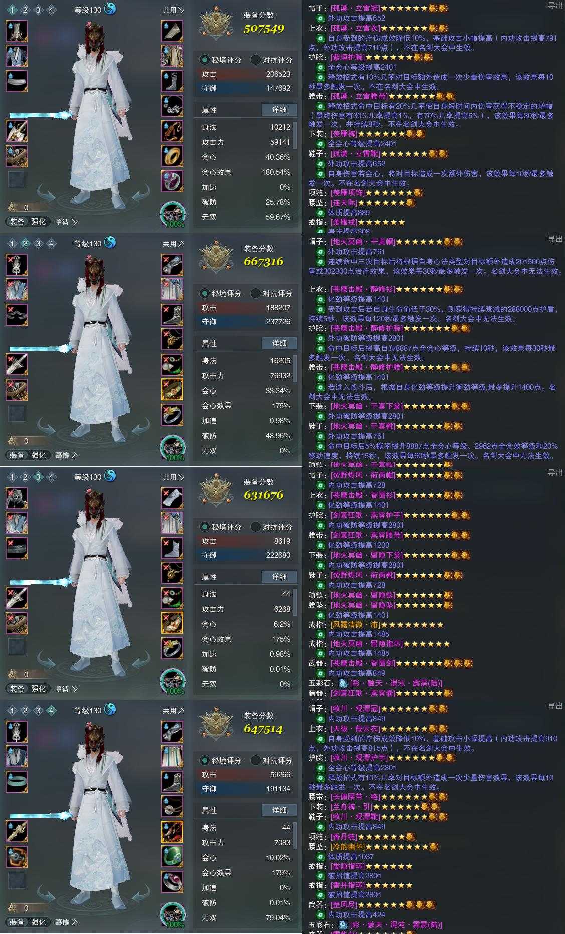 【装备】130级,太虚剑意PVE507549,太虚剑意PVP667316,紫霞功PVP631676,紫霞功PVE647514