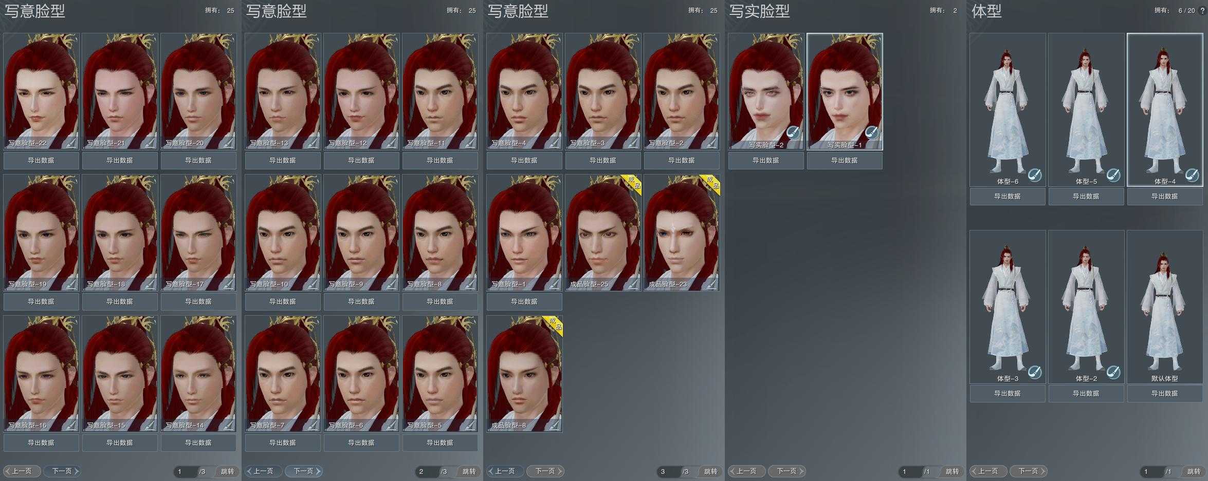 【捏脸】写意脸型25个,写实脸型2个,体型6个