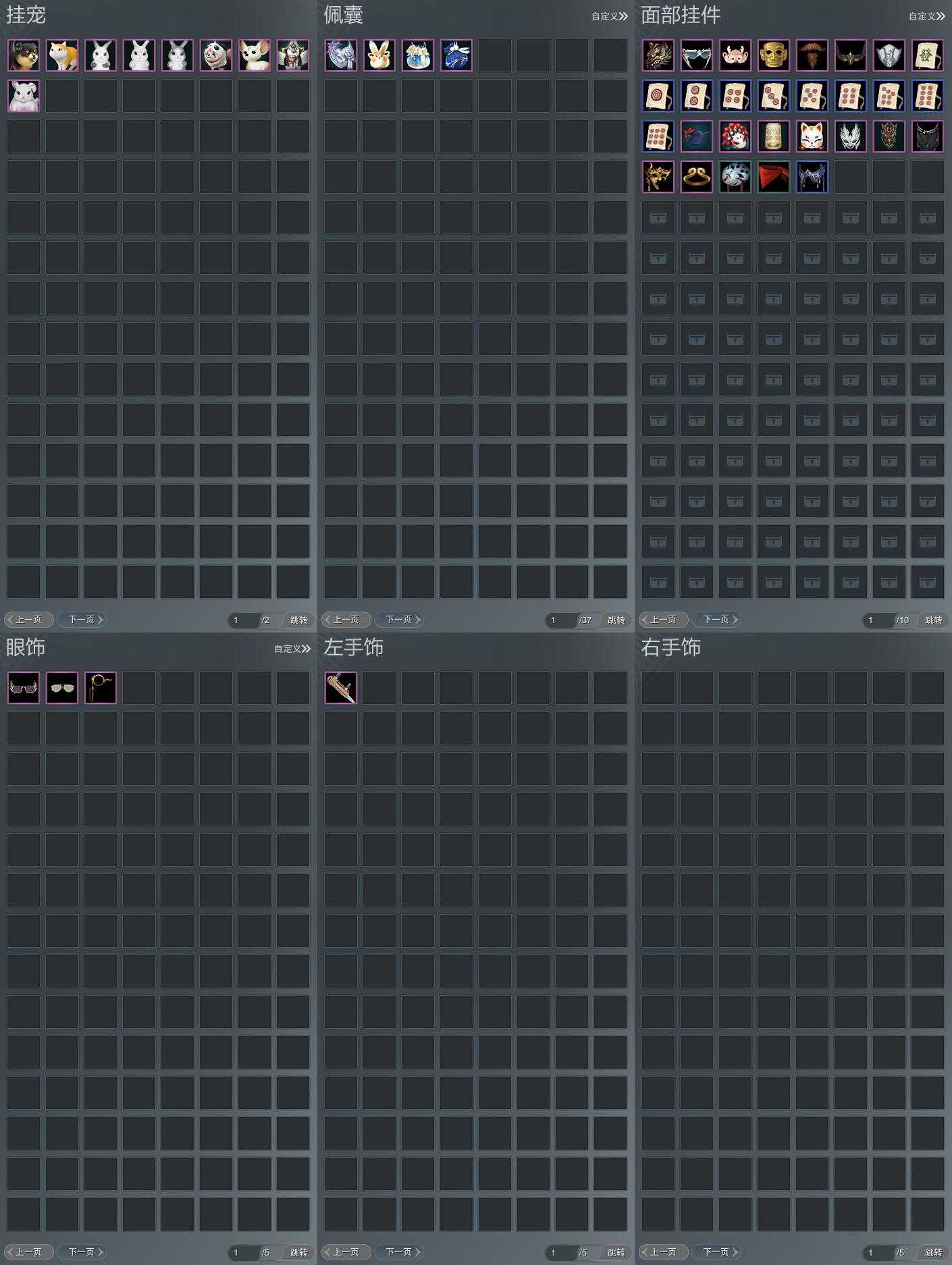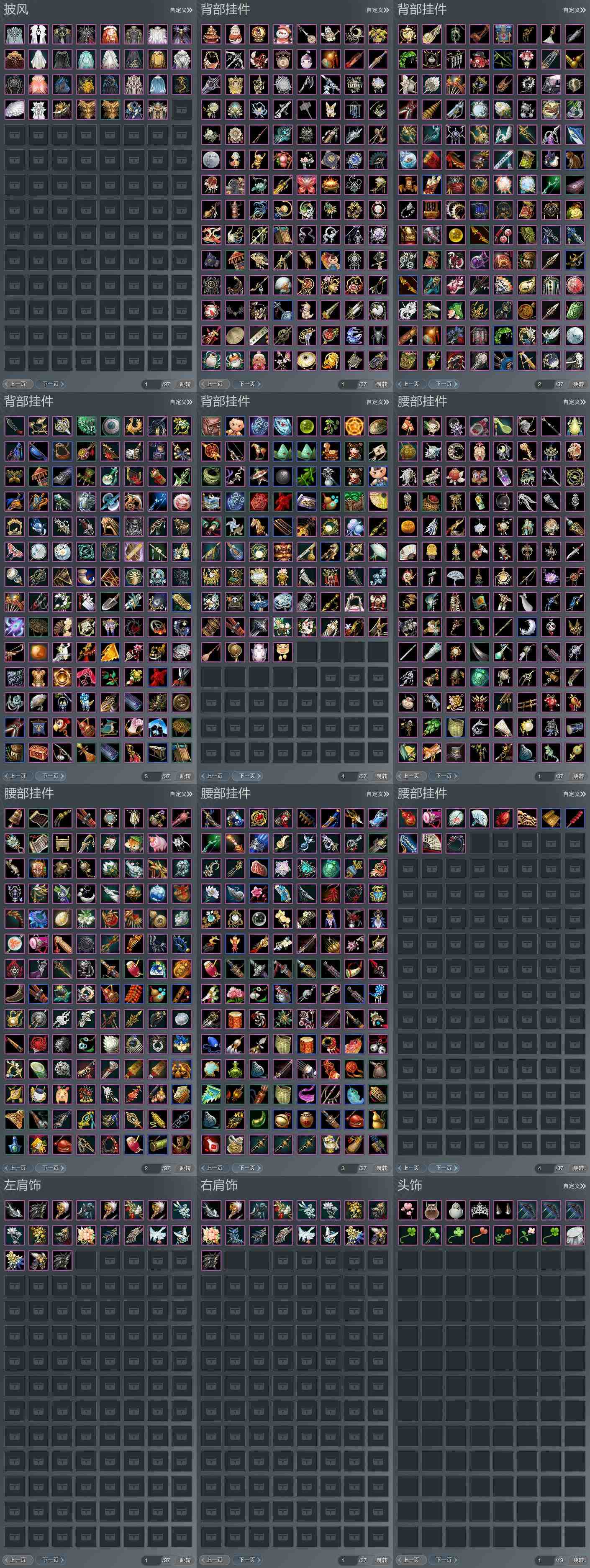 【肩饰】19左,17右,[双鱼曳波·无量·左, 云中雪霁·左, 碧翎叠云·左, 浮屠明音·左, 剑歌惊月·左, 九阙天影·左, 陌上窈窕·左, 天穹掠影·左, 北望天狼·左, 鹤影天青·左][云中雪霁·右, 碧翎叠云·右, 浮屠明音·右, 剑歌惊月·右, 九阙天影·右, 陌上窈窕·右, 玄天覆雪·右, 天穹掠影·右, 北望天狼·右, 鹤影天青·右]