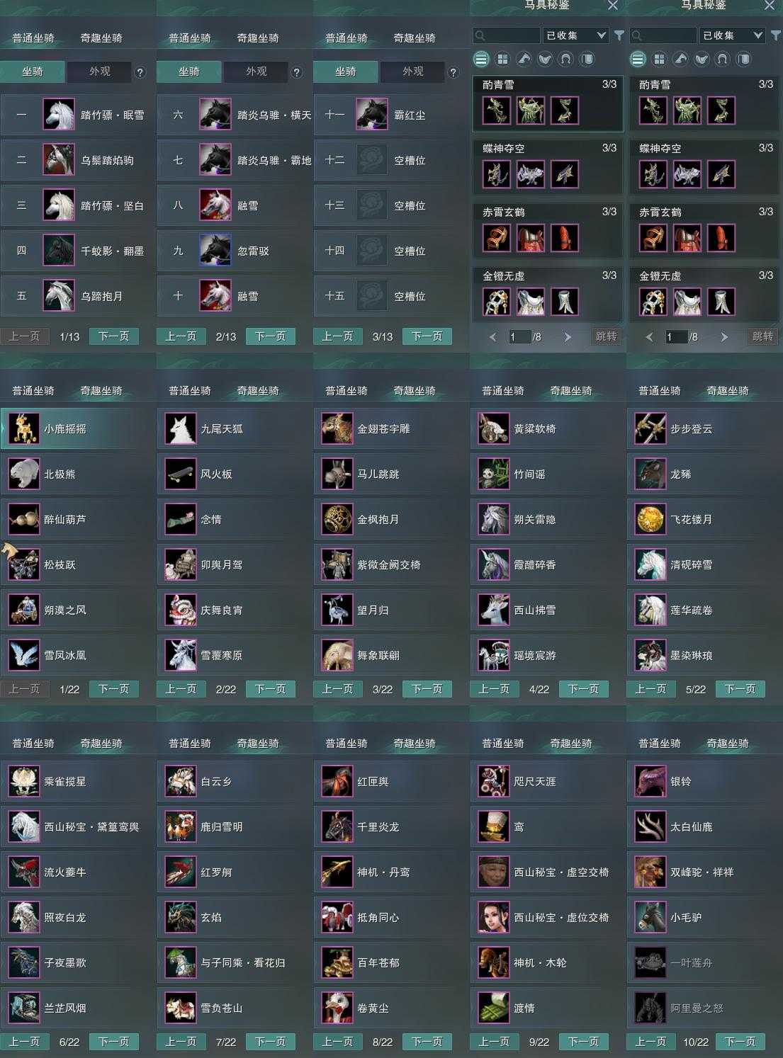 【坐骑】11个[踏炎横天, 踏炎霸地, 乌蹄抱月, 翻墨, 踏竹骠眠雪, 踏竹骠坚白, 霸红尘, 乌鬃踏焰驹]