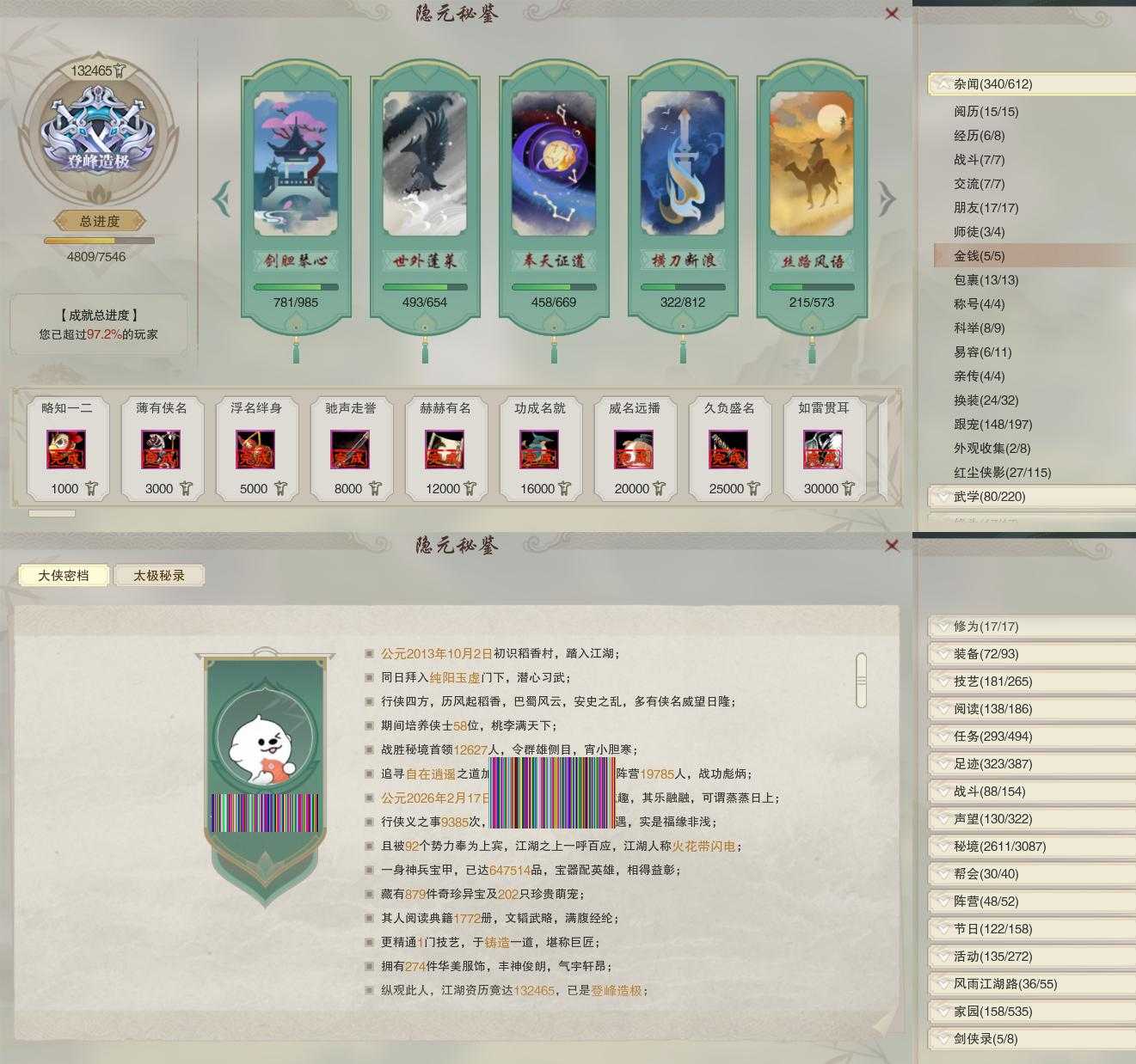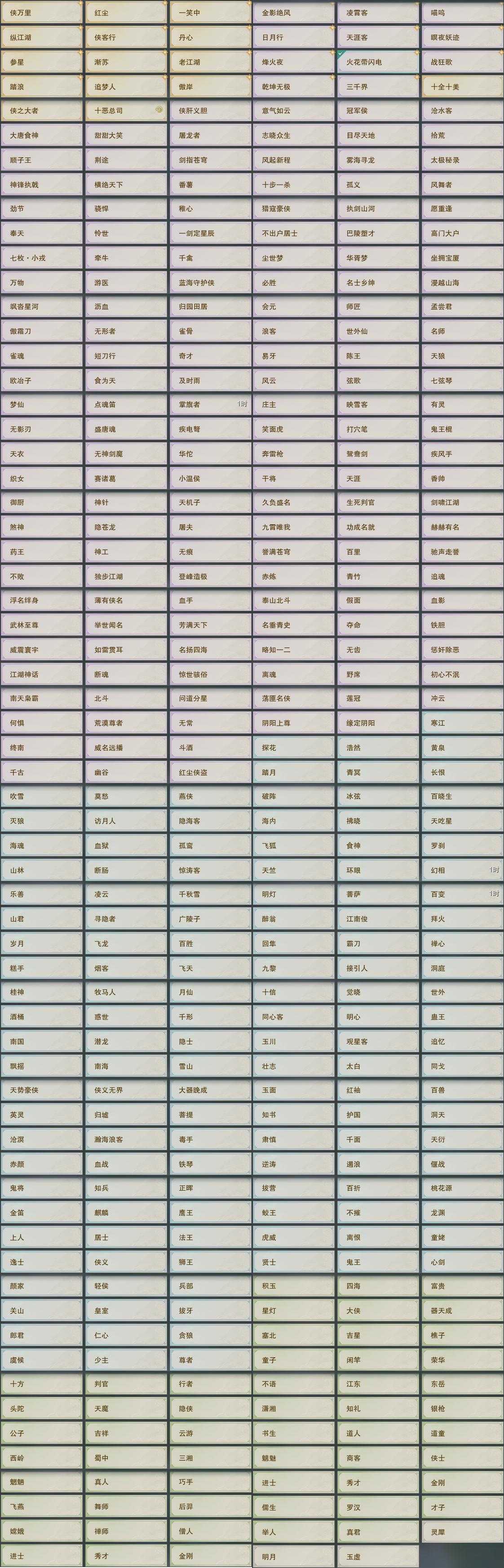 【称号】[凌霄客, 纵江湖, 侠万里, 乾坤无极]