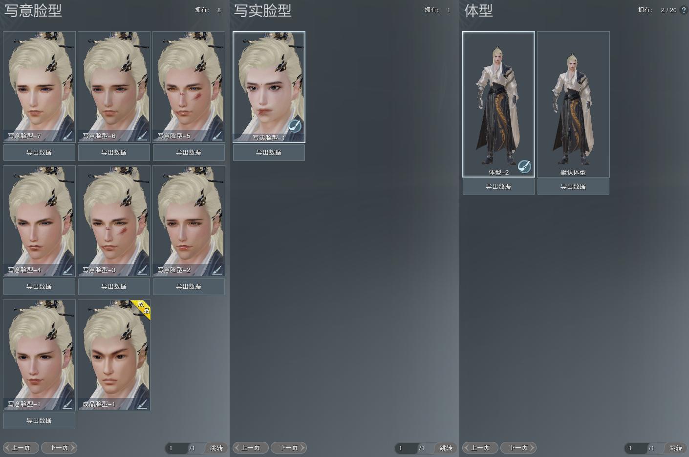 【捏脸】写意脸型8个,写实脸型1个,体型2个