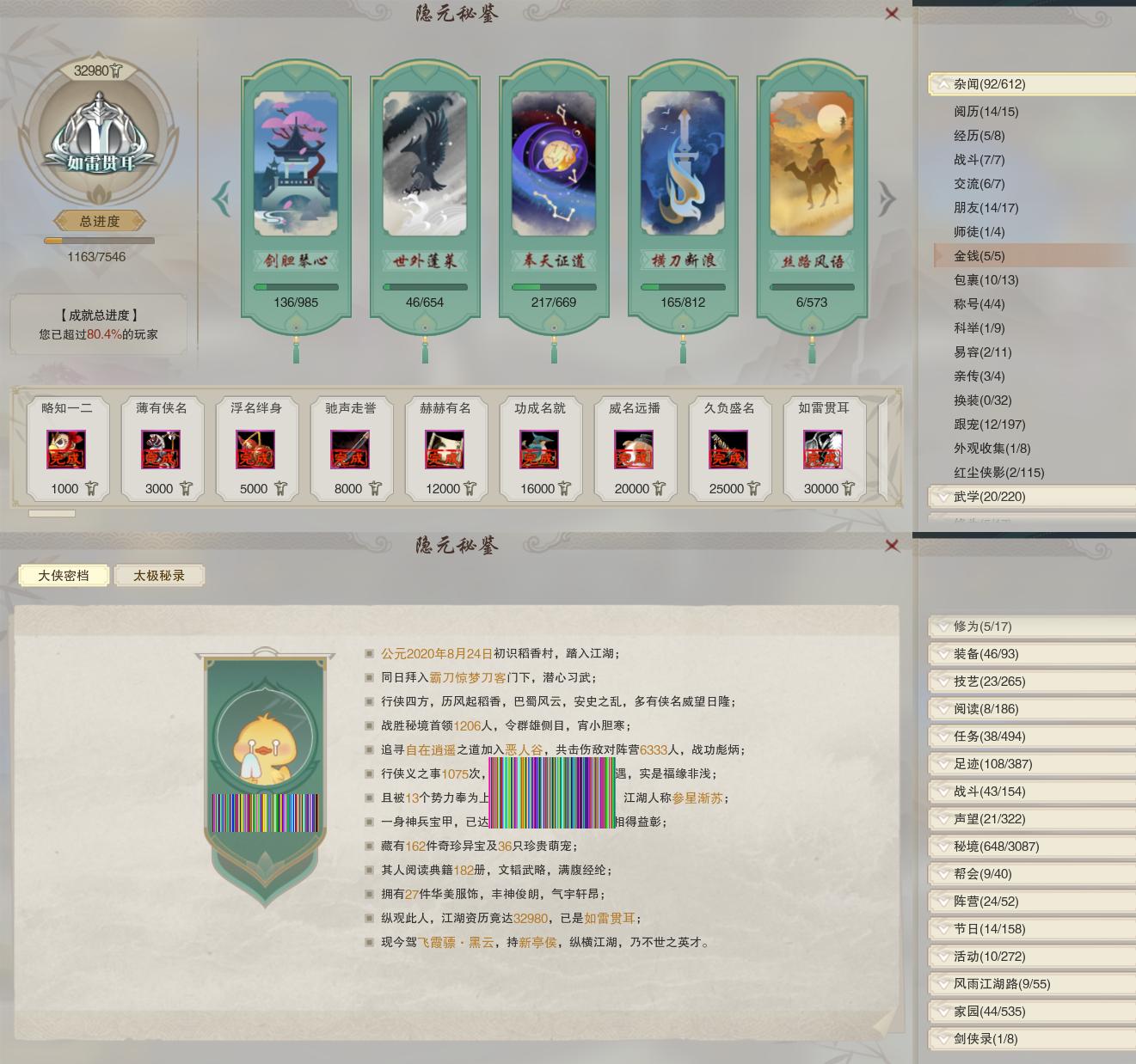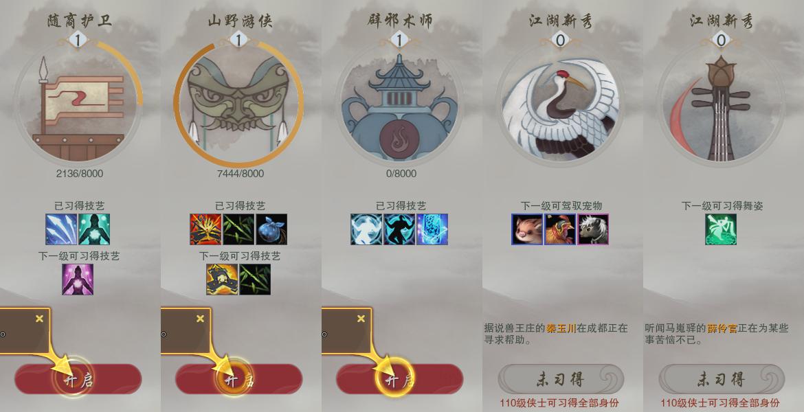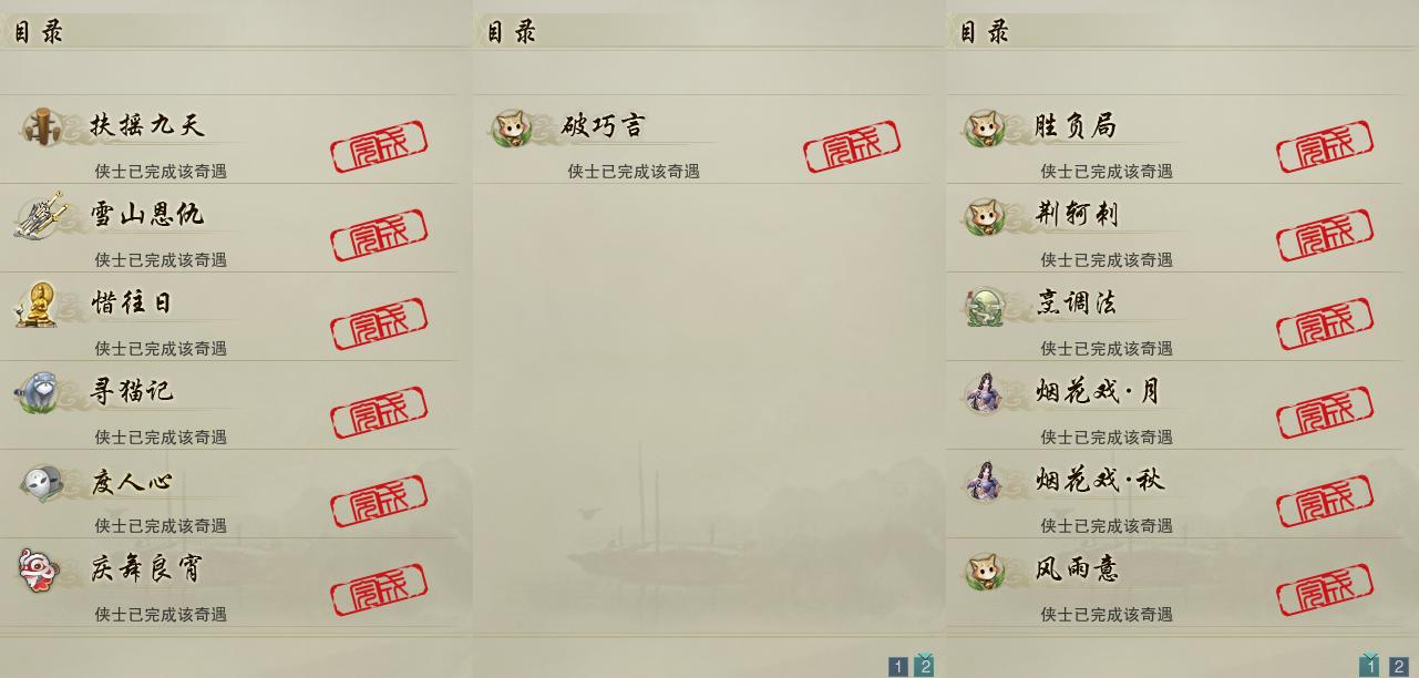 【奇遇】6个[雪山恩仇, 惜往日, 扶摇九天, 寻猫记, 庆舞良宵, 度人心]