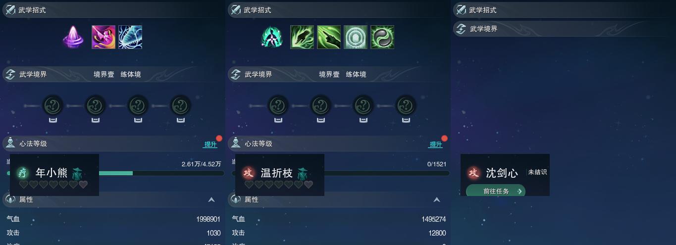 【同伴】年小熊61级境界壹,温折枝1级境界壹,沈剑心级