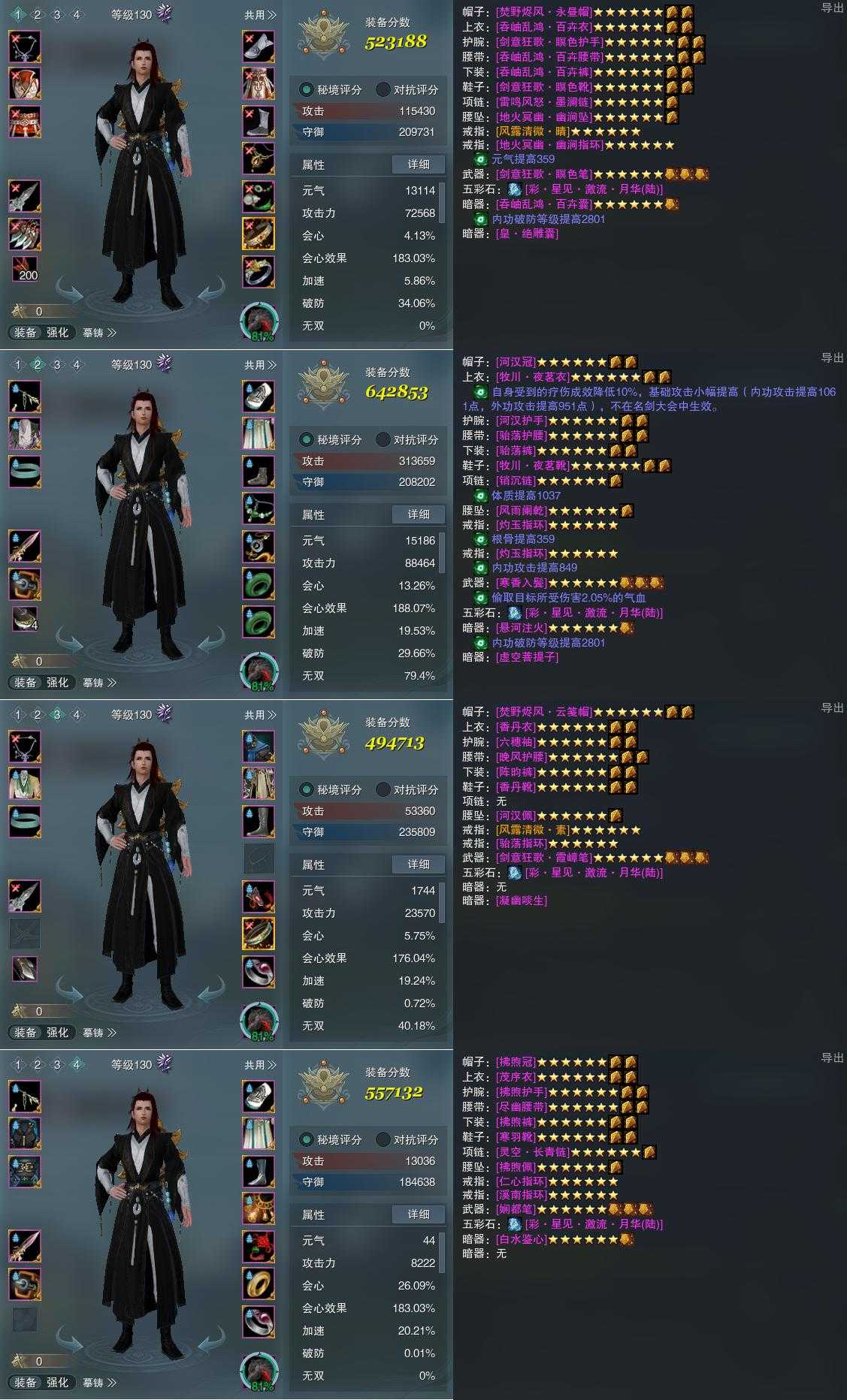 【装备】130级,花间游PVP523188,花间游PVE642853,离经易道装备三494713,离经易道PVE557132