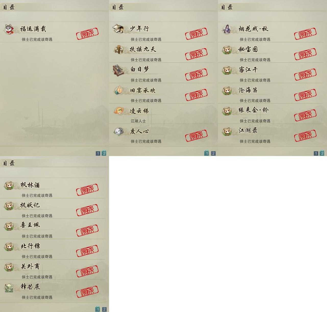【奇遇】7个[白日梦, 少年行, 扶摇九天, 凌云梯, 度人心, 旧宴承欢, 福运满载]