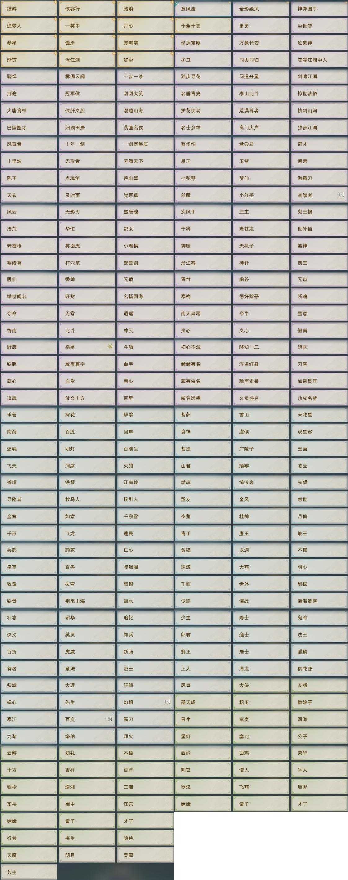 【同伴】康宴别82级境界伍,沐晴柔81级境界伍,盖聂志81级境界贰,卫庄志81级境界贰,月嘉禾80级境界伍,李星云79级境界伍,唐小珂77级境界壹,沈剑心77级境界伍,贺闲志77级境界壹,白鹊志77级境界叁,李逍遥74级境界壹,姜棠志63级境界壹,赵灵儿42级境界壹,温折枝1级境界壹,年小鹿1级境界壹,阮归云1级境界壹,温辞秋1级境界壹,年小熊1级境界壹,阮闲舟1级境界壹,茸茸志1级境界壹,费大劲1级境界壹