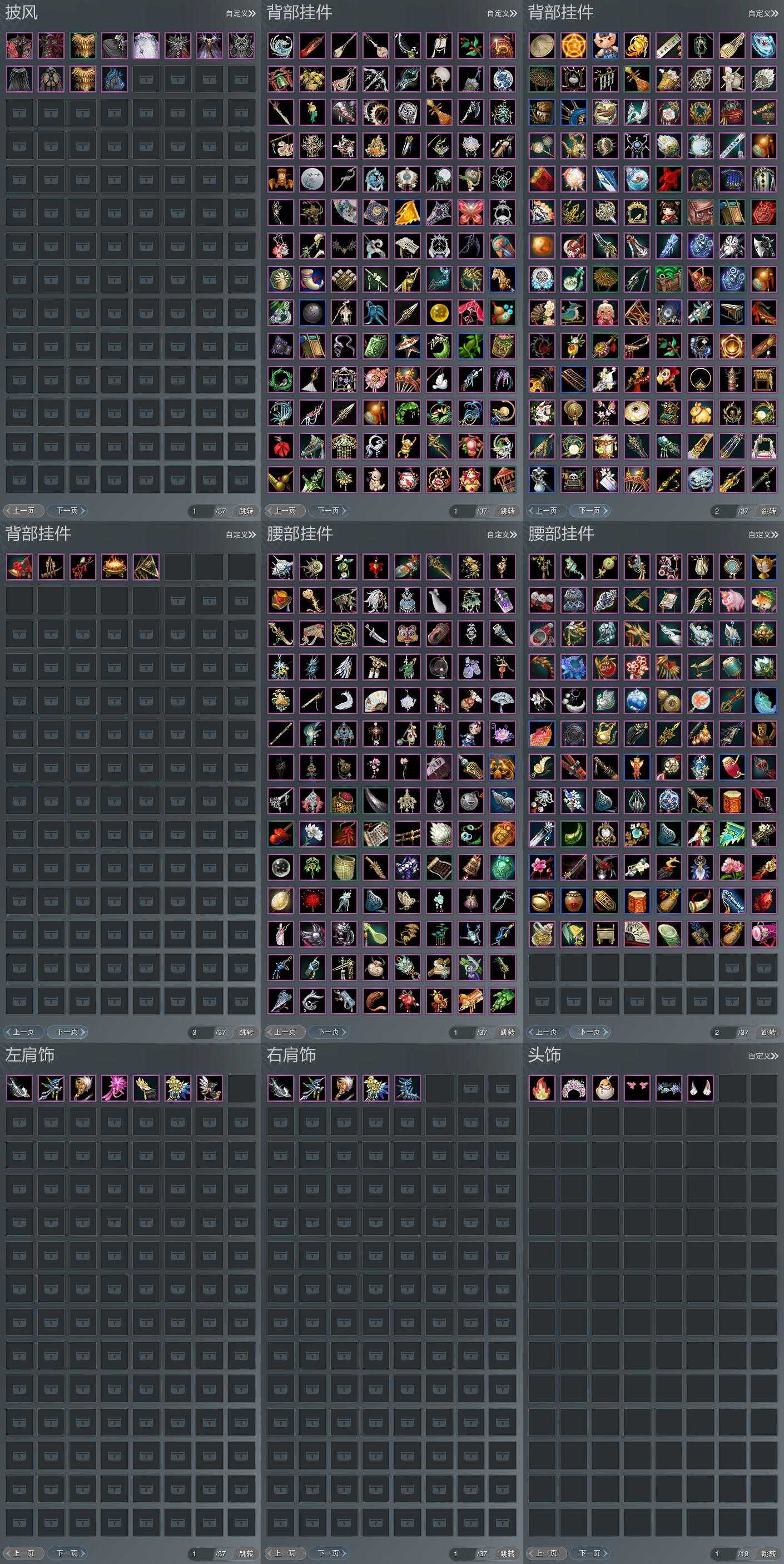【披风】12个,[7W资历披风, 一代浩气, 三山披风, 奇遇披风, 赤庭葳蕤]