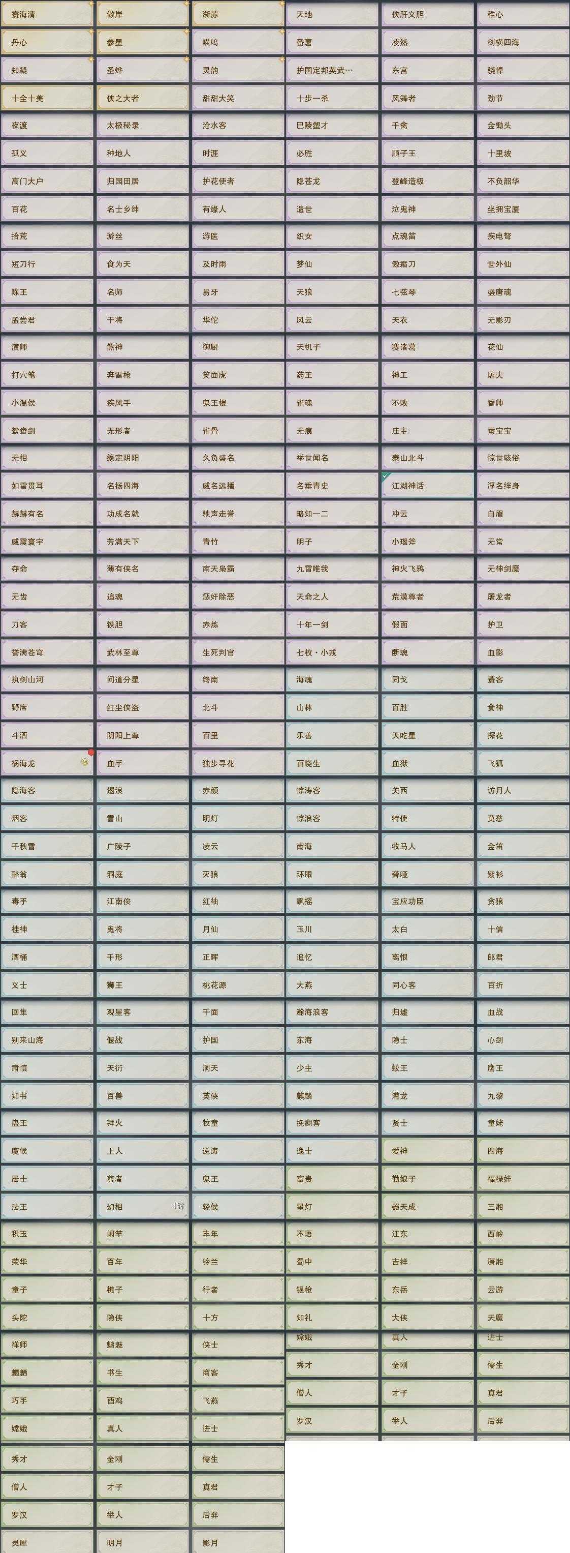 【奇珍】44个[枫林酒, 红衣歌, 归乡路, 孩童书, 捉妖记, 至尊宝, 石敢当, 稚子心, 青草歌, 荆轲刺]