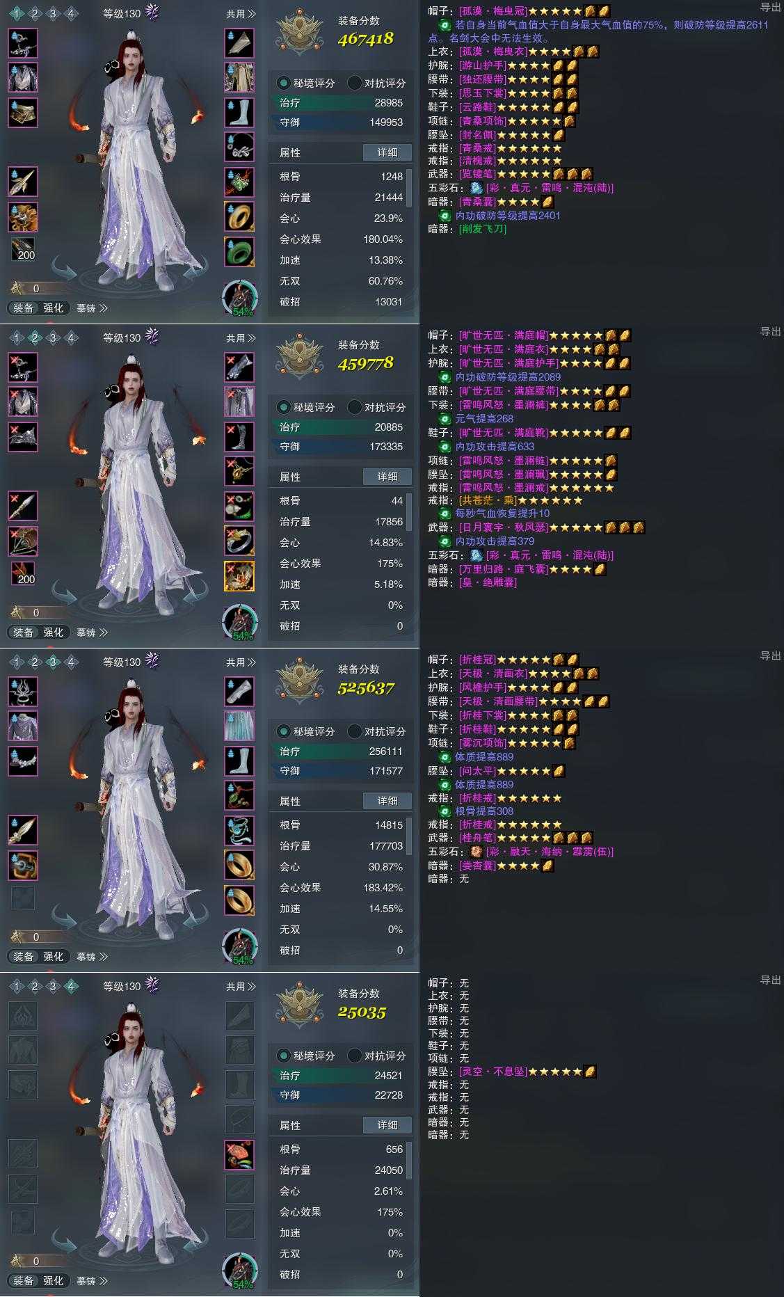【装备】130级,花间游PVE467418,花间游装备二459778,离经易道PVE525637,装备四25035